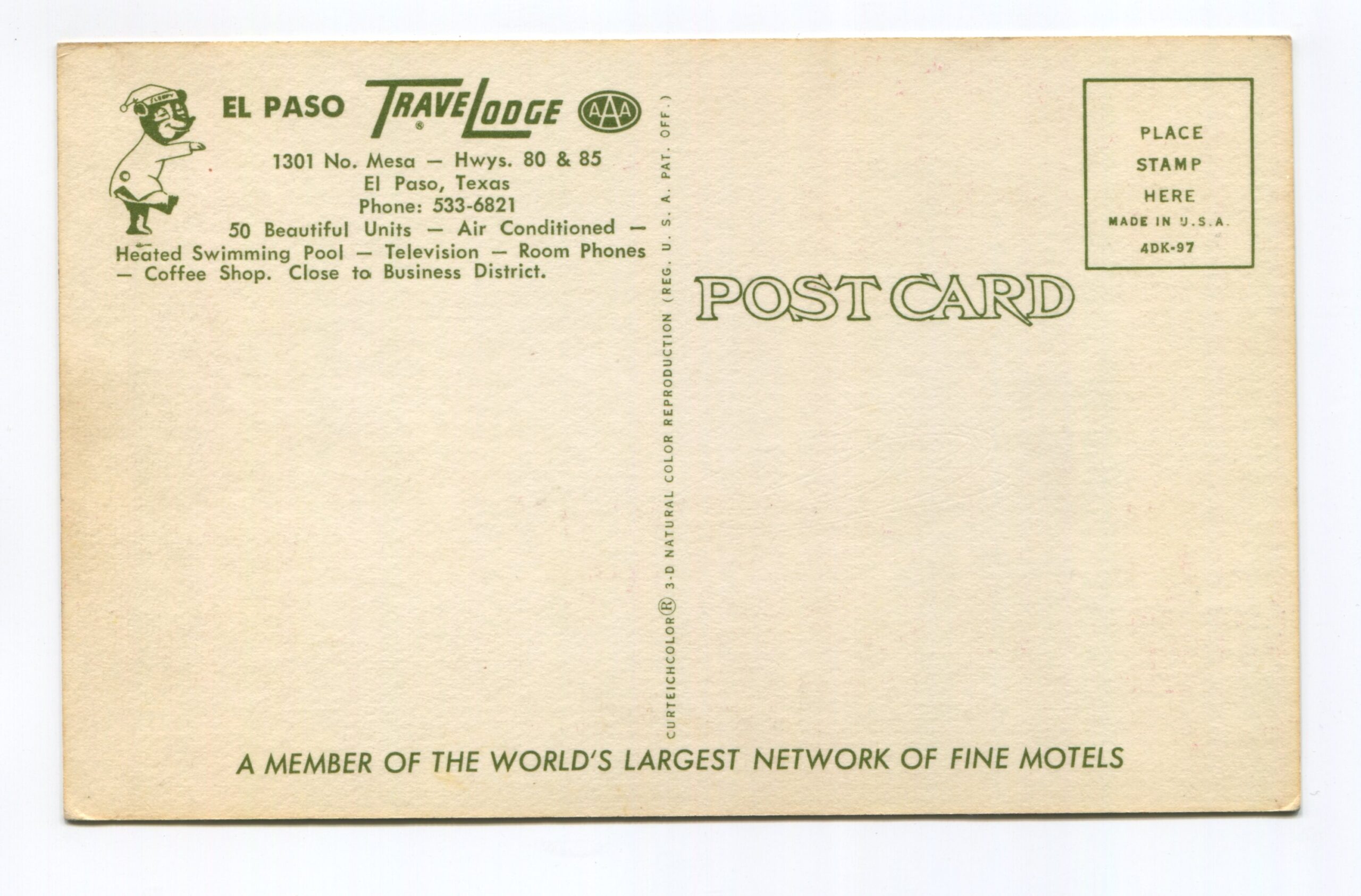 El Paso Travelodge El Paso Texas postcard