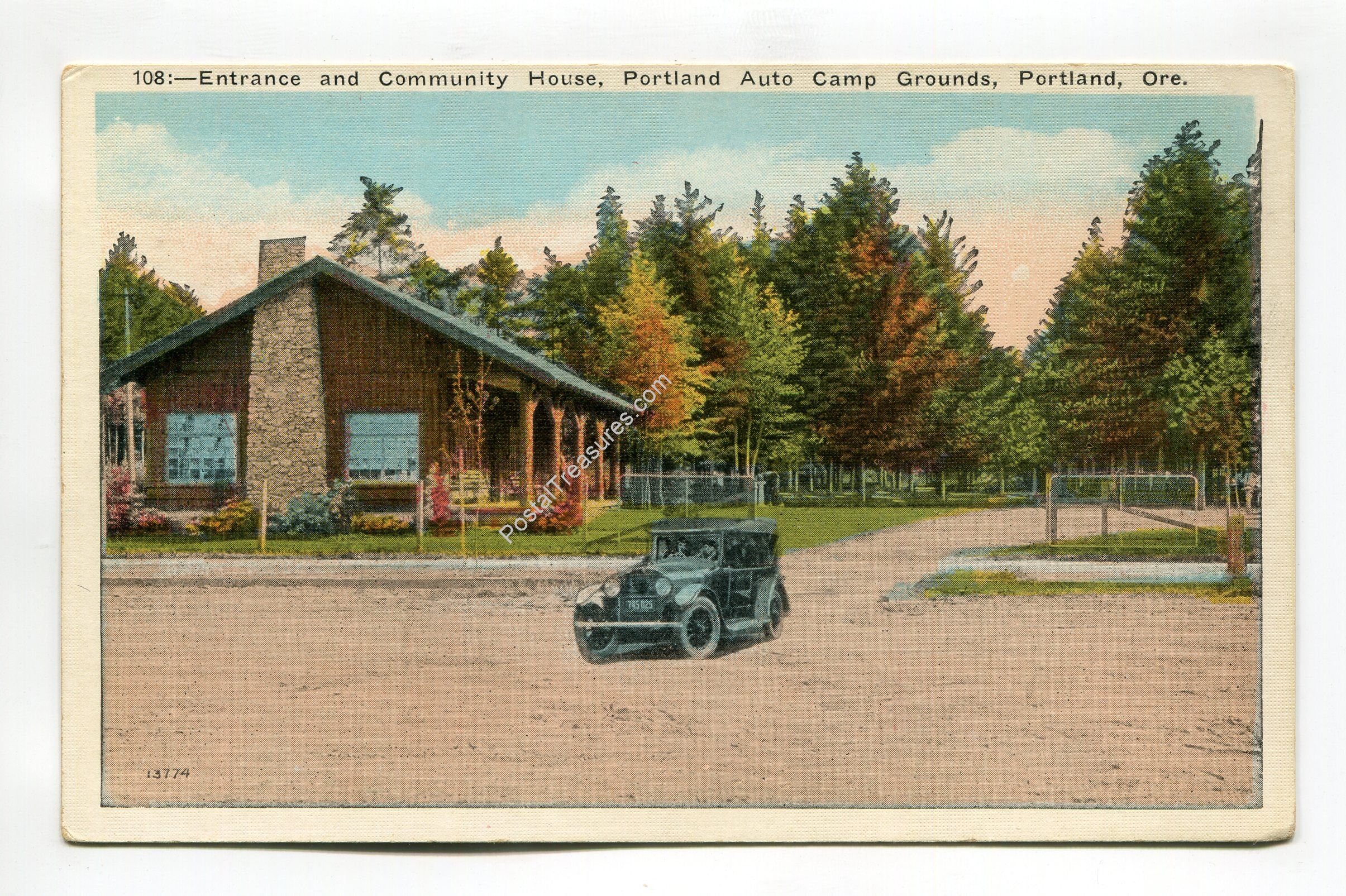 Entrance and Community House Portland Auto Camp Grounds Portland Oregon postcard