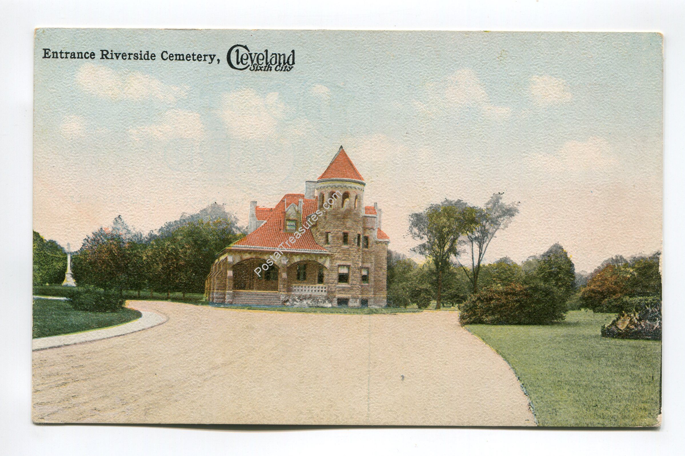Entrance Riverside Cemetery Cleveland Ohio postcard