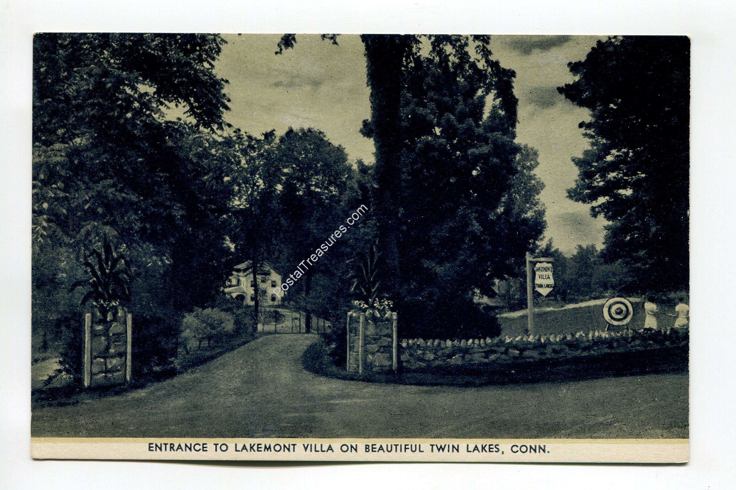 Entrance to Lakemont Villa on beautiful Twin Lakes Connecticut postcard