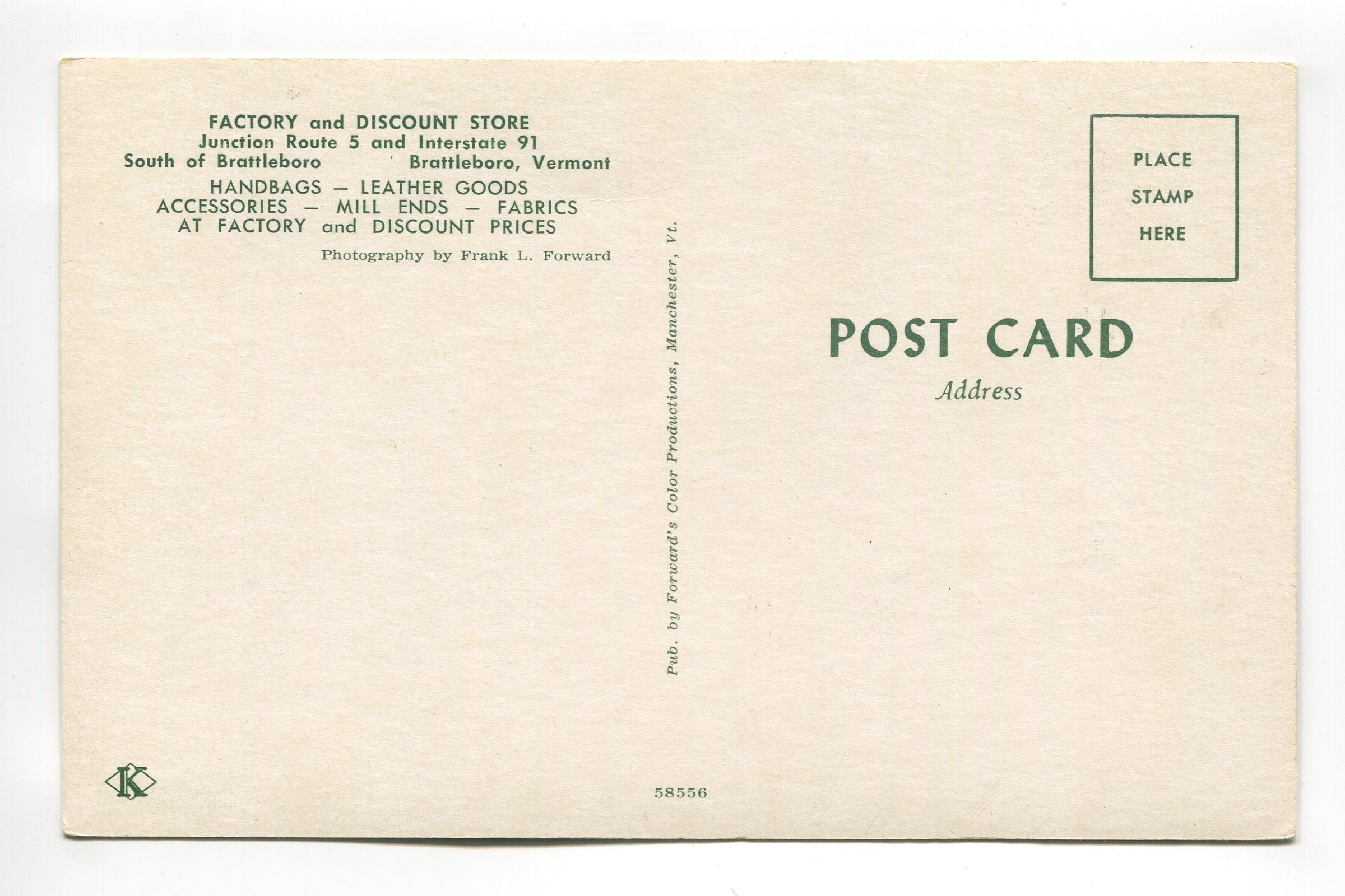 Factory and Discount Store south of Brattleboro Vermont postcard