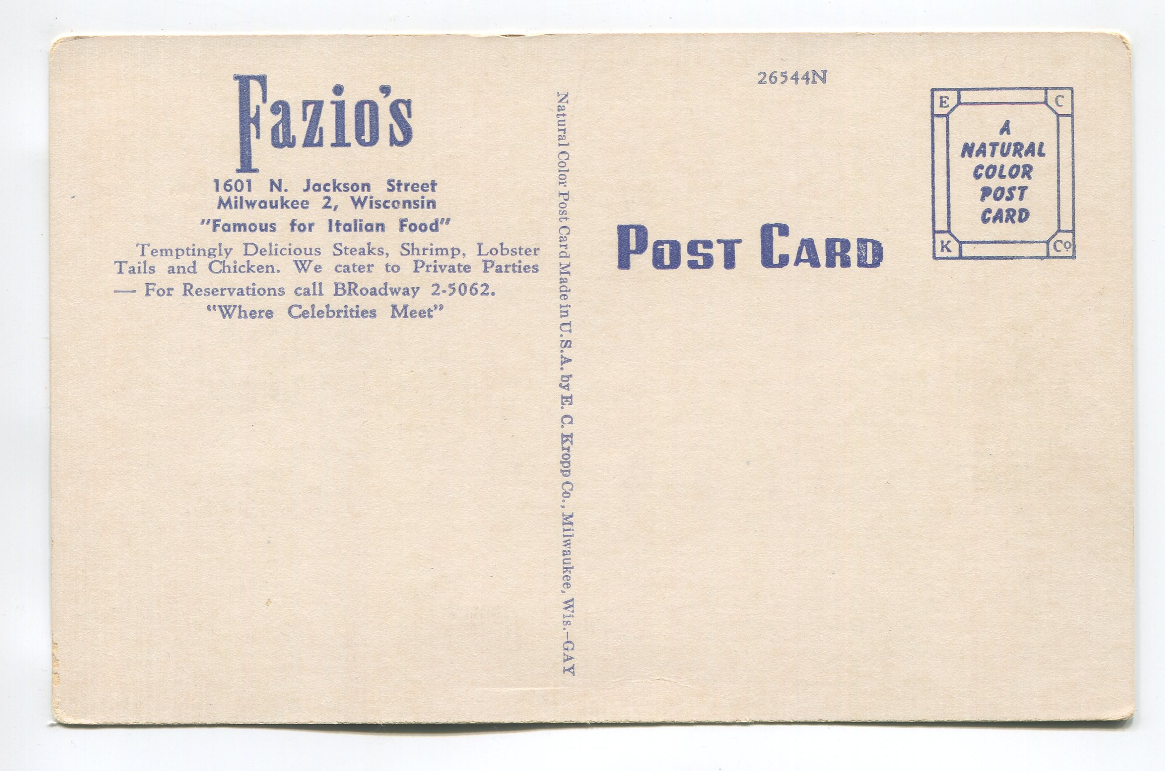 Fazios Milwaukee Wisconsin postcard
