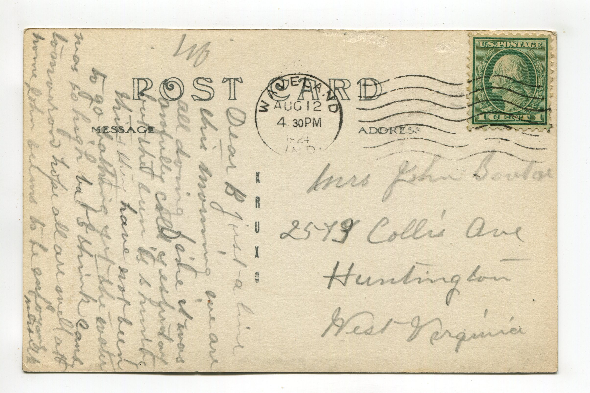 Condition – noticeable corner/edge wear, rear message impression visible on card front, soiling/marks