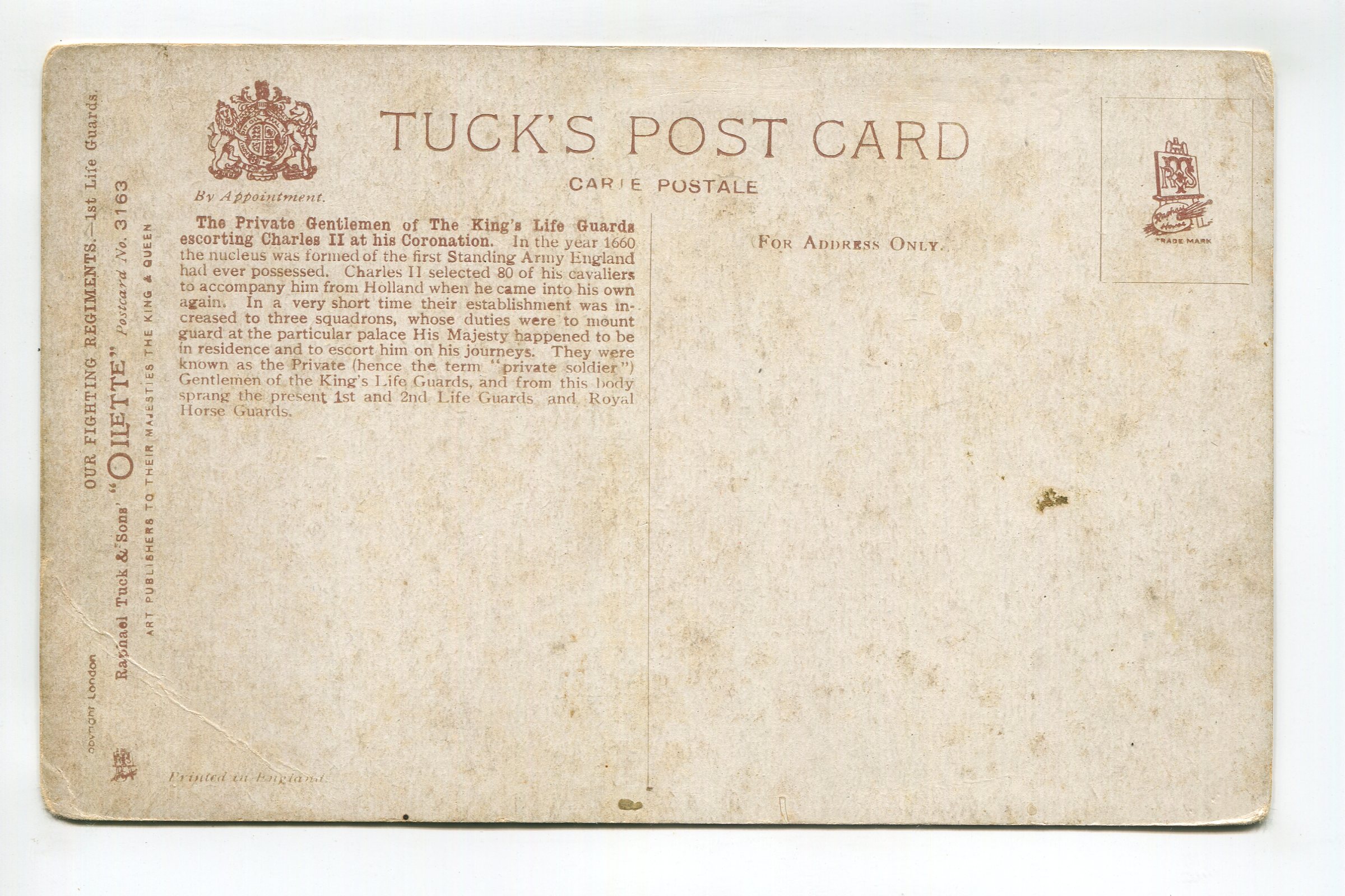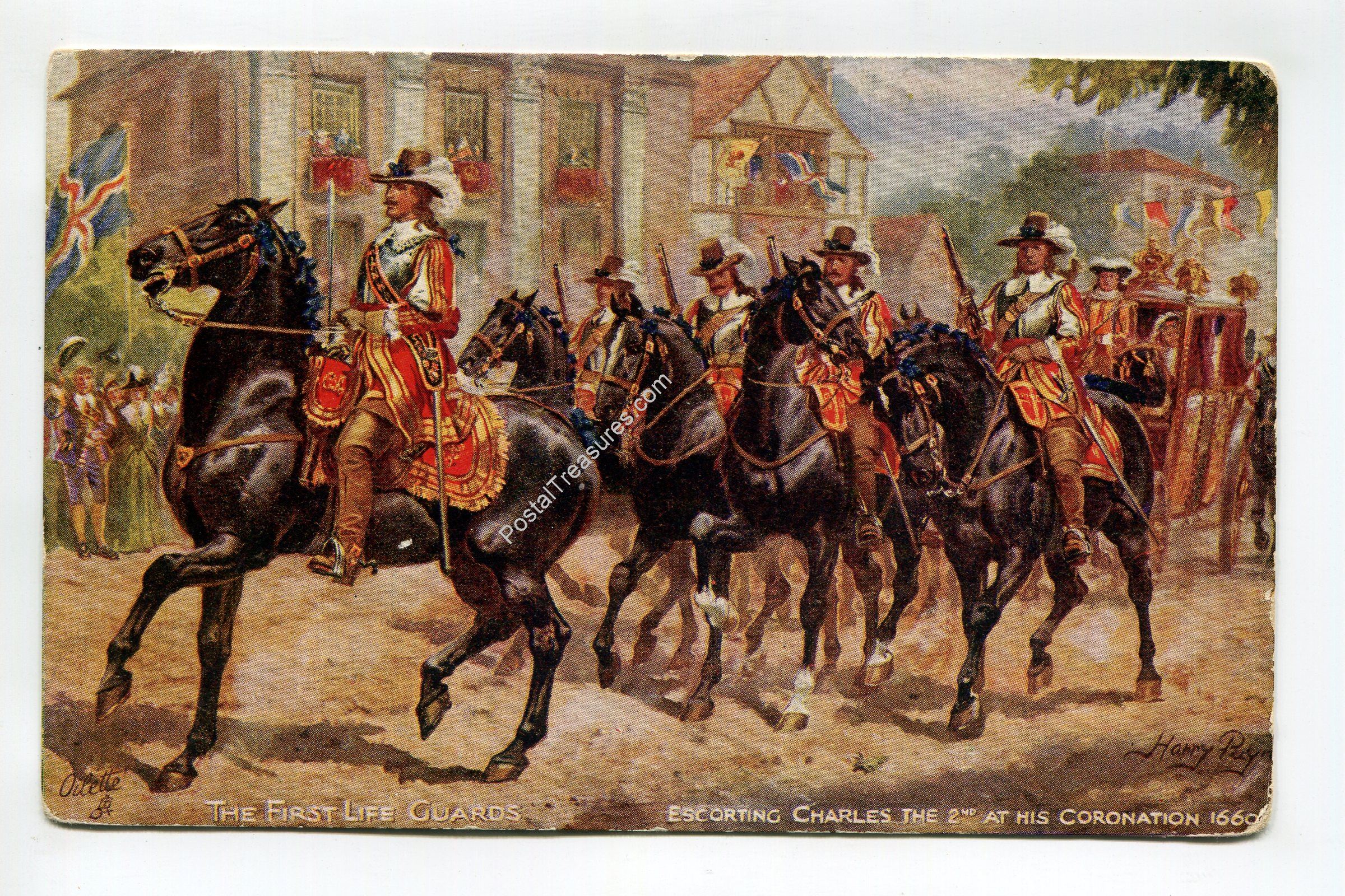 First Life Guards escorting Charles the 2nd at his Coronation 1660 postcard