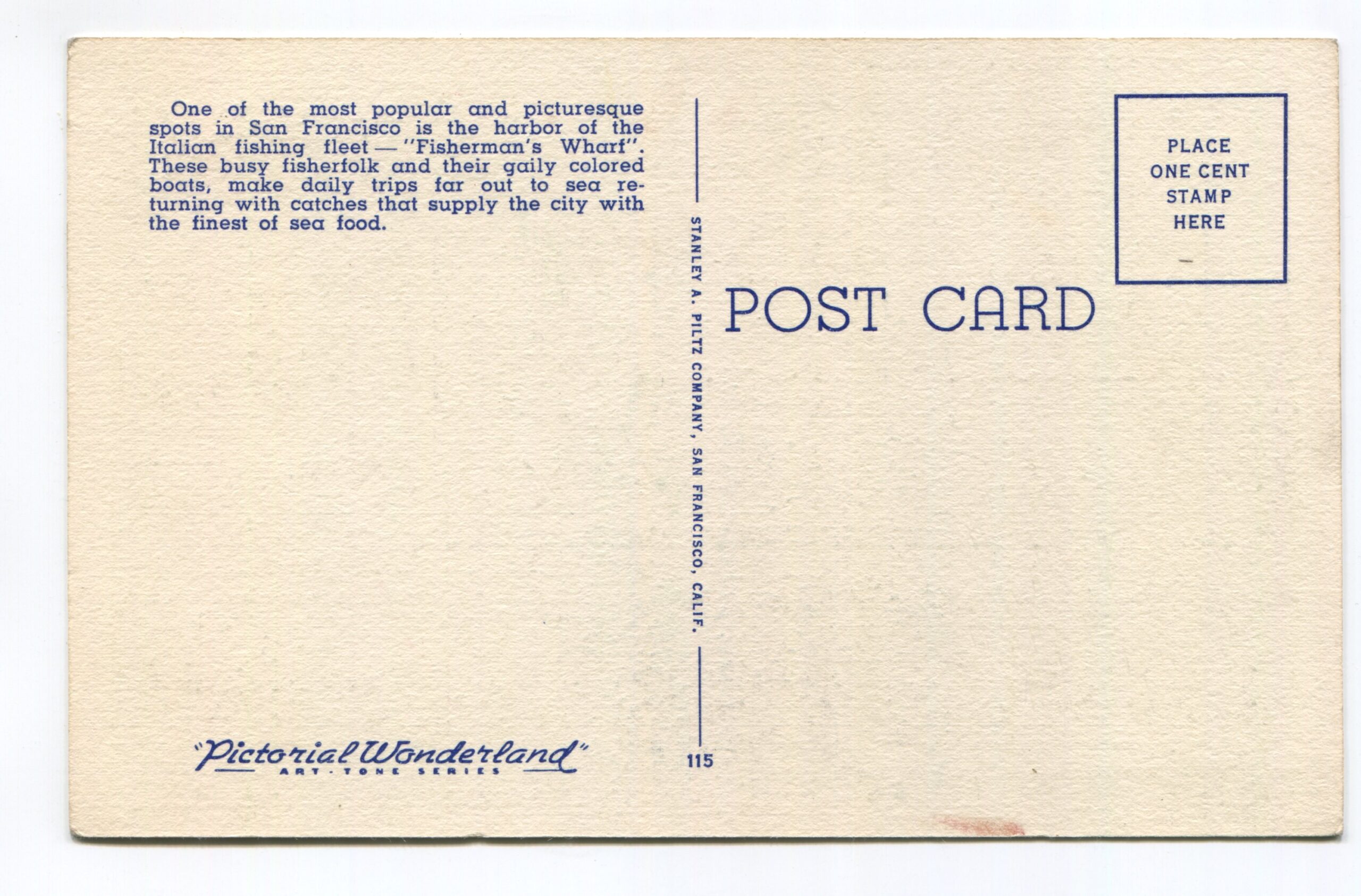 Fishing Fleet berthed at Fisherman’s Wharf San Francisco California postcard