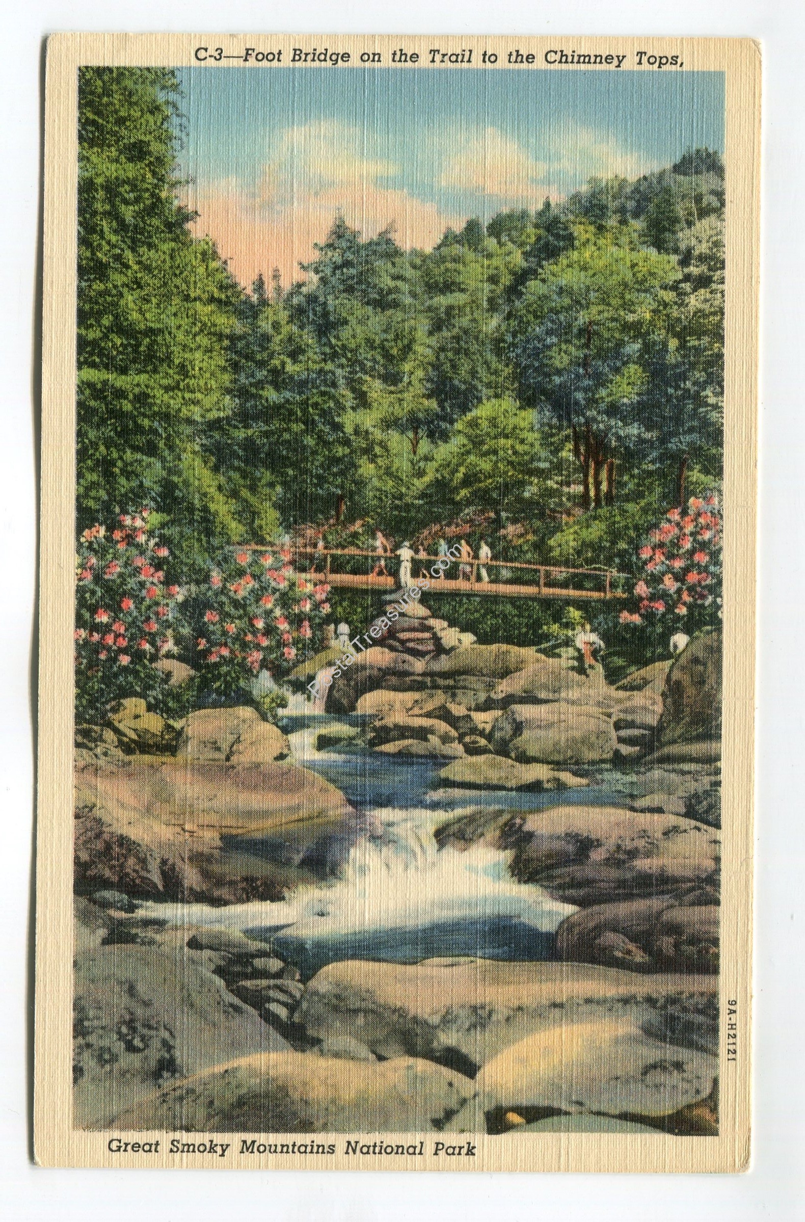 Foot Bridge on the Trail to the Chimney Tops Great Smoky Mountains National Park postcard