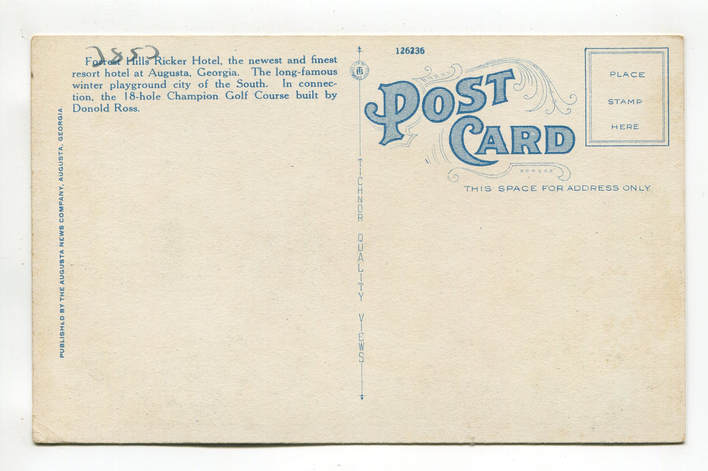 Forrest Hills Ricker Hotel Augusta Georgia postcard