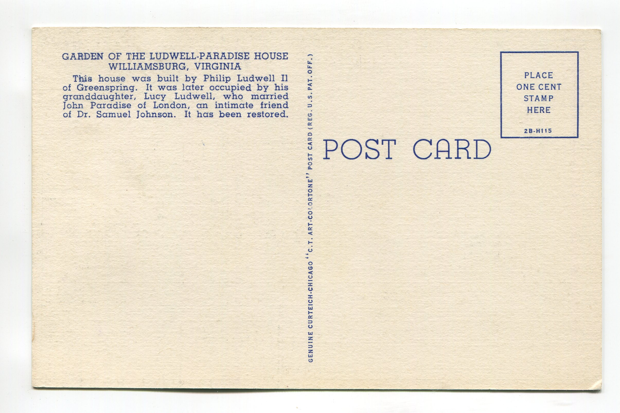 Garden of Ludwell Paradise House Williamsburg Virginia postcard