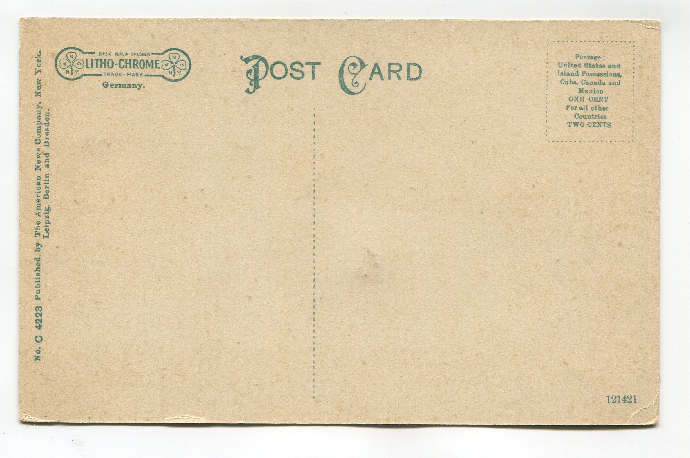 Condition – noticeable corner/edge wear, creases in corners and in top edge right of center, indentation below card center, album impression marks around corners, marks on card front, soiling/marks