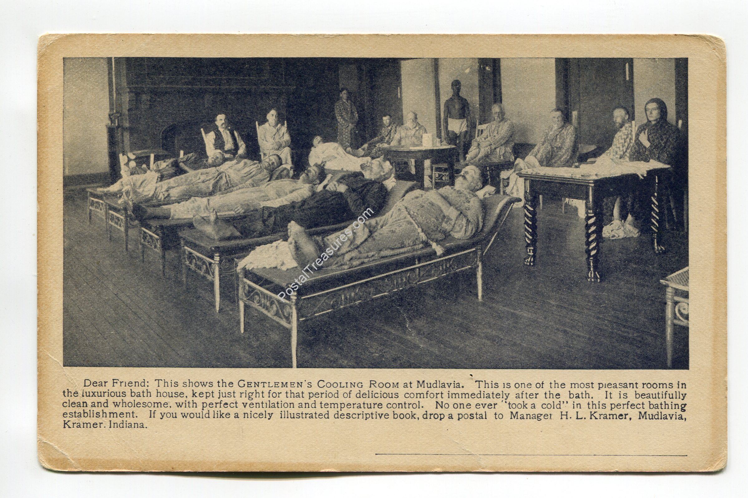 Gentlemens Cooling Room at Mudlavia Kramer Indiana postcard