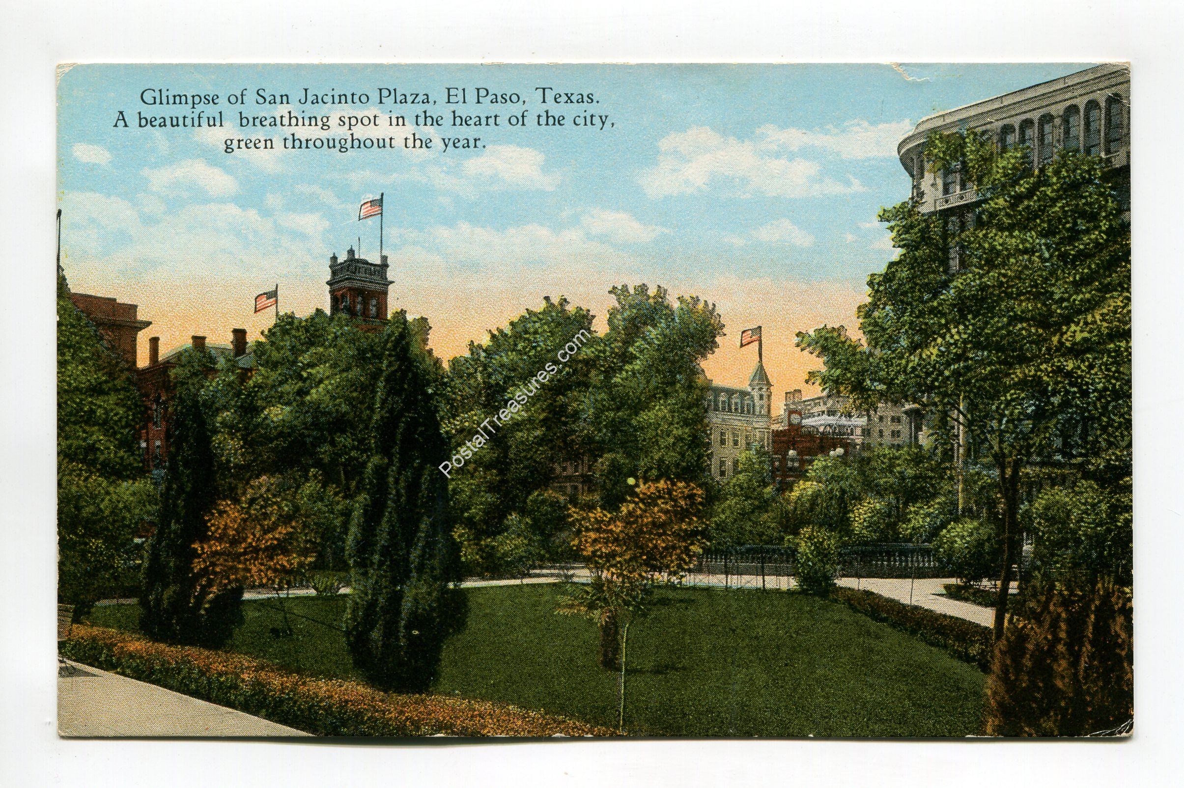 Glimpse of San Jacinto Plaza El Paso Texas postcard
