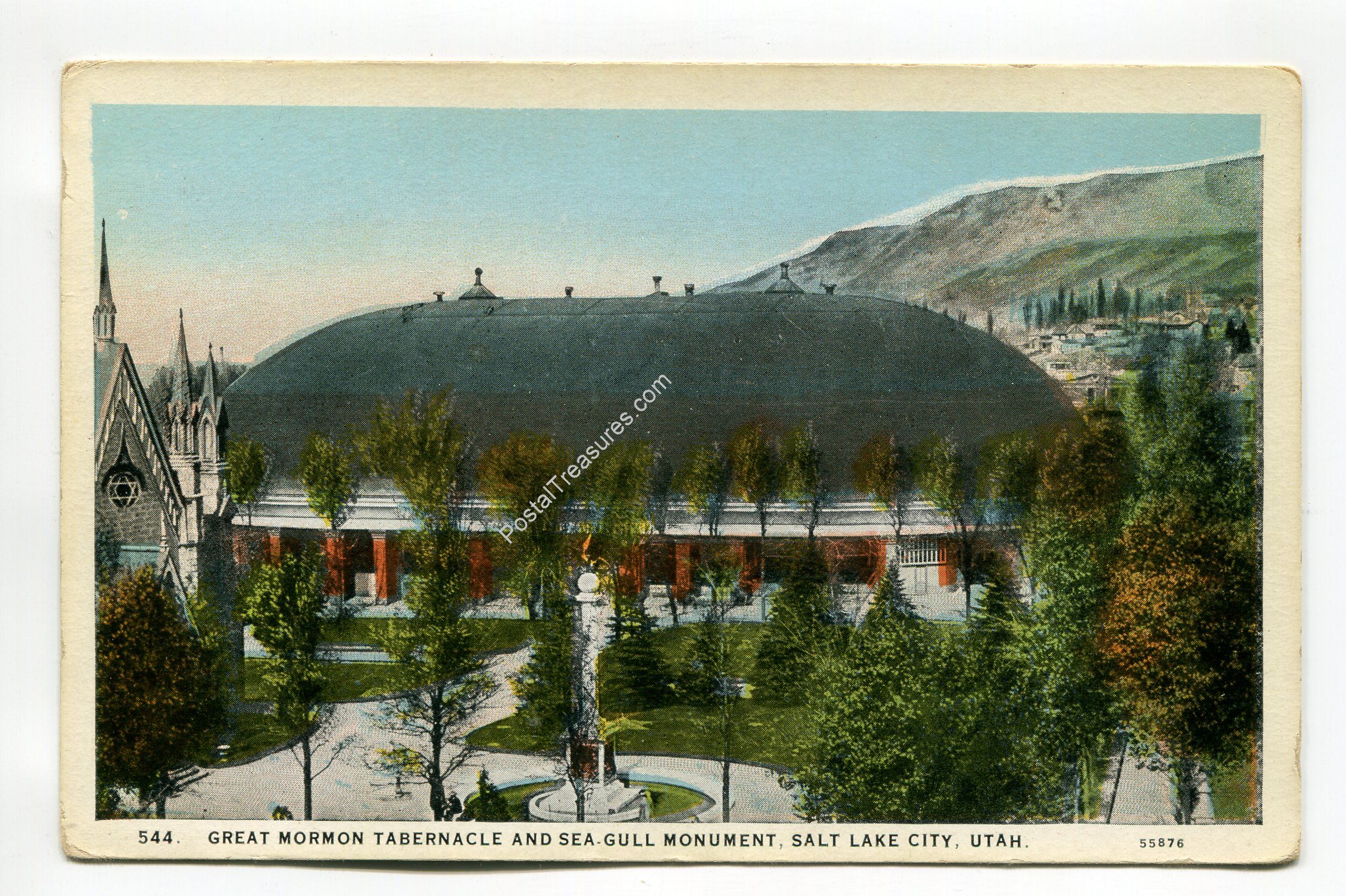 Great Mormon Tabernacle and Sea Gull Monument Salt Lake City Utah postcard