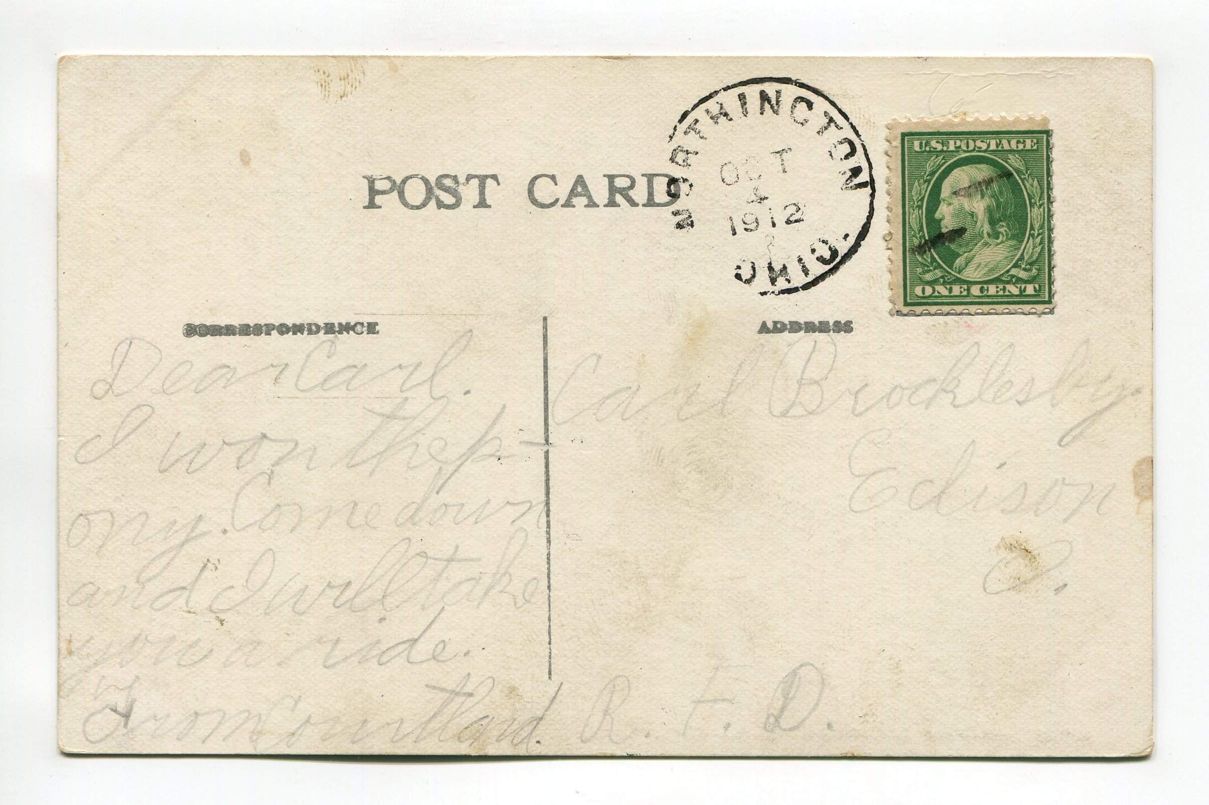 Condition – noticeable corner/edge wear, crease in corners, cancellation impression visible on card front, album impression marks around corners, marks on card front, soiling/marks