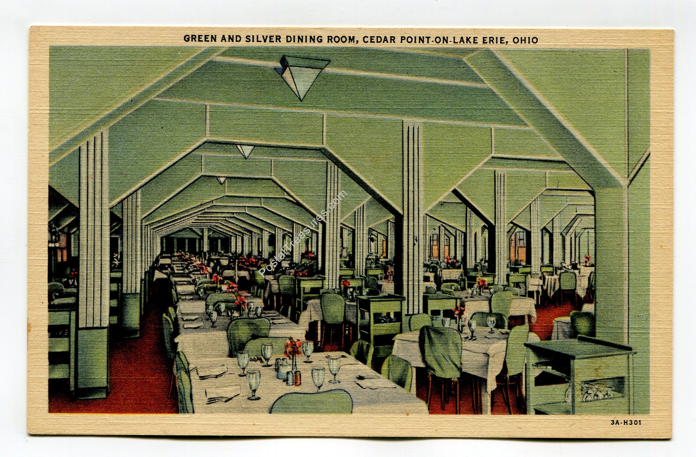 Green and Silver Dining Room Cedar Point on Lake Erie Ohio postcard