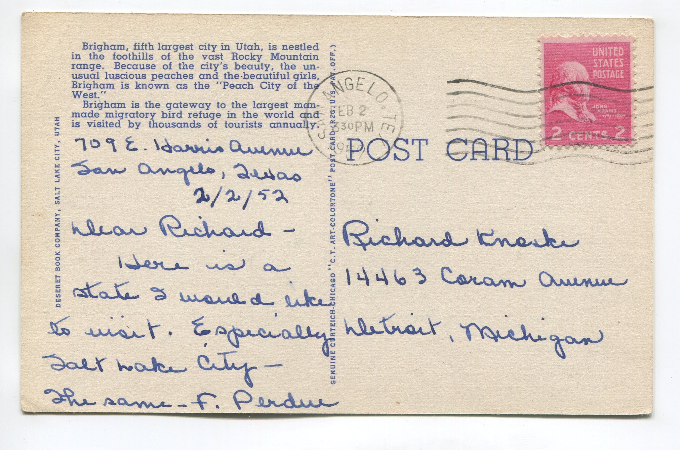 Condition – corner/edge wear, crease in corners and near upper right corner, cancellation marks on card front, soiling/marks