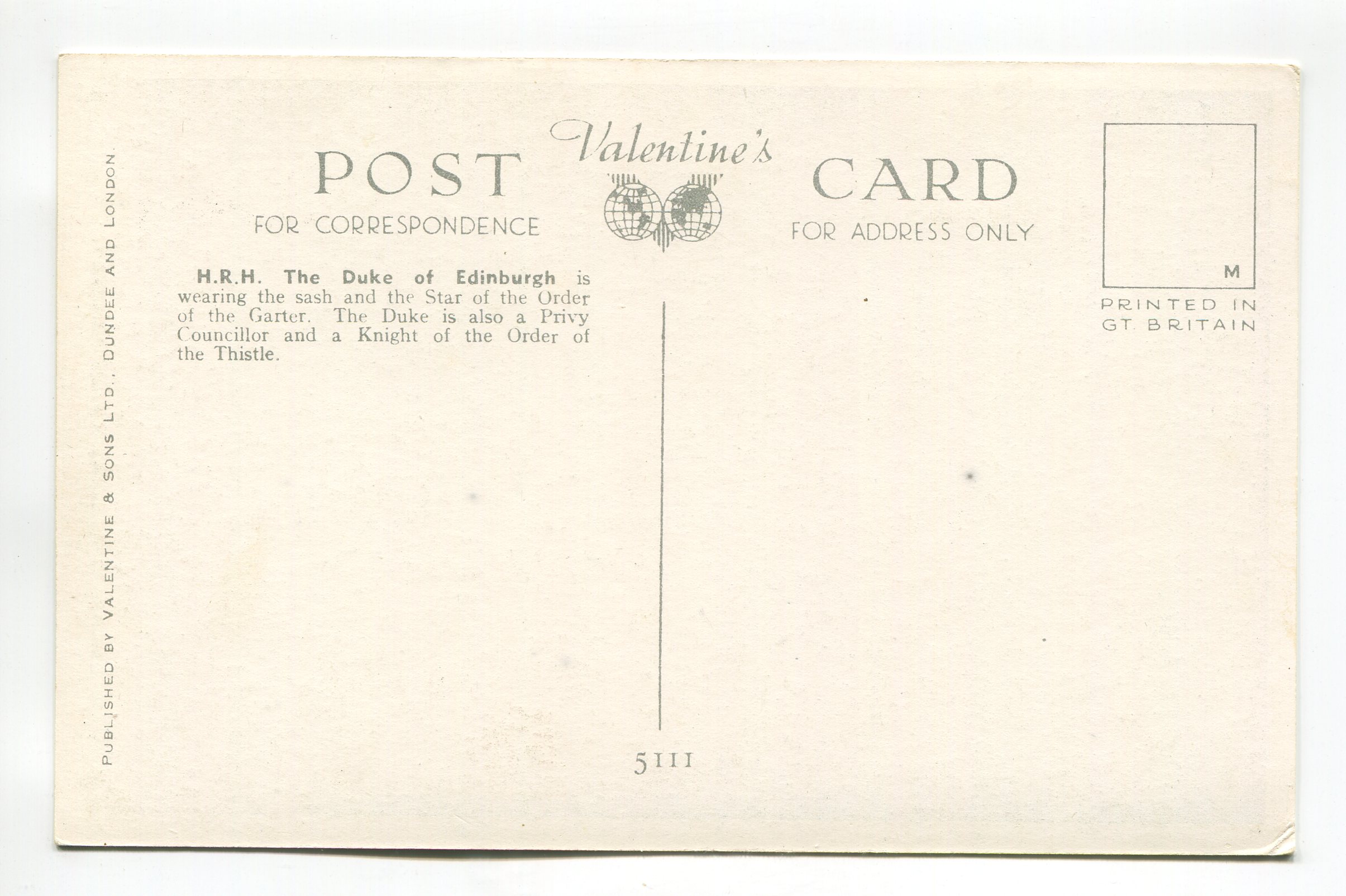 H R H The Duke of Edinburgh – 5111 postcard