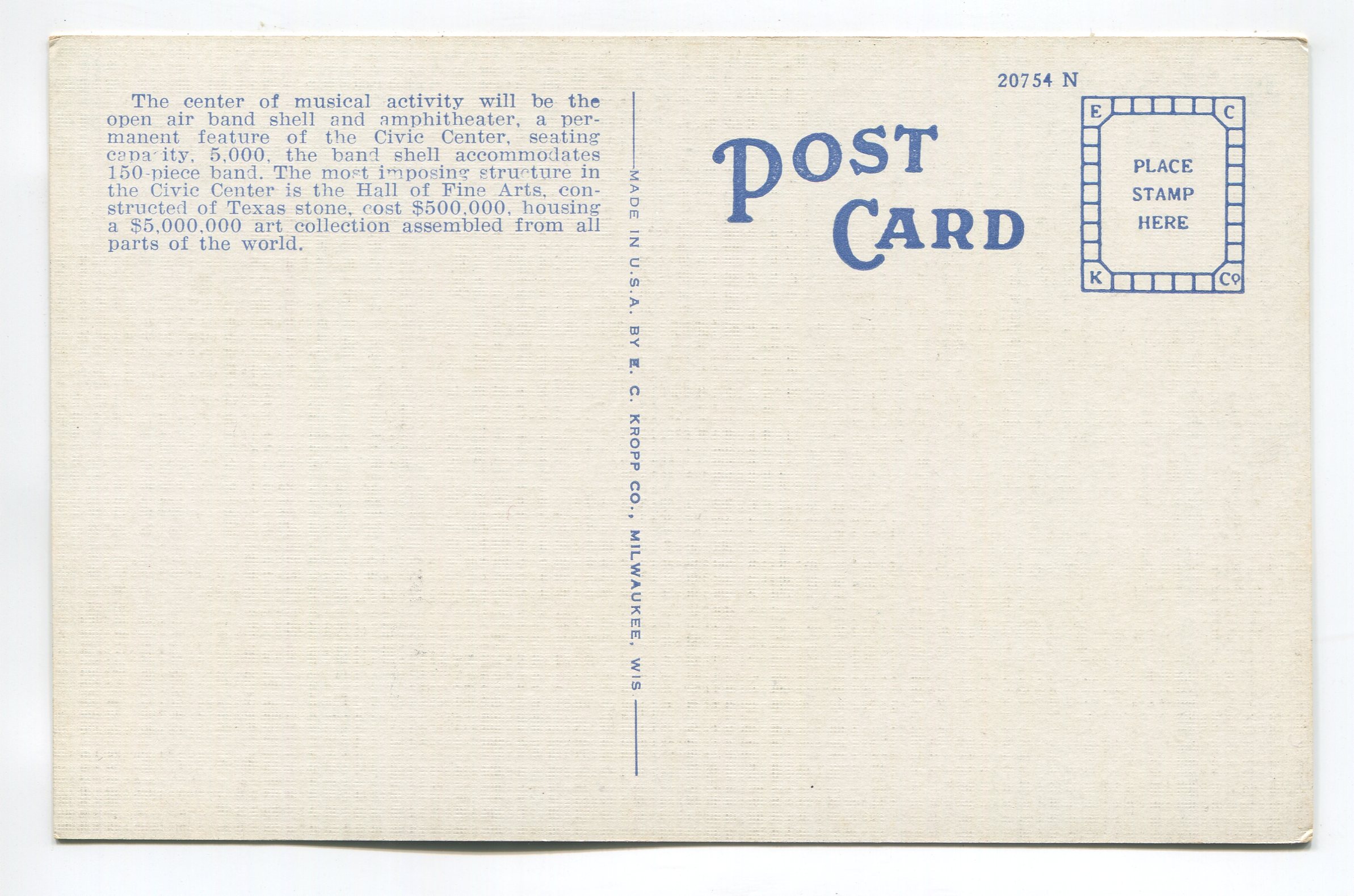 Hall of Fine Arts Texas Centennial Exposition Dallas – Band Shell Amphitheater postcard