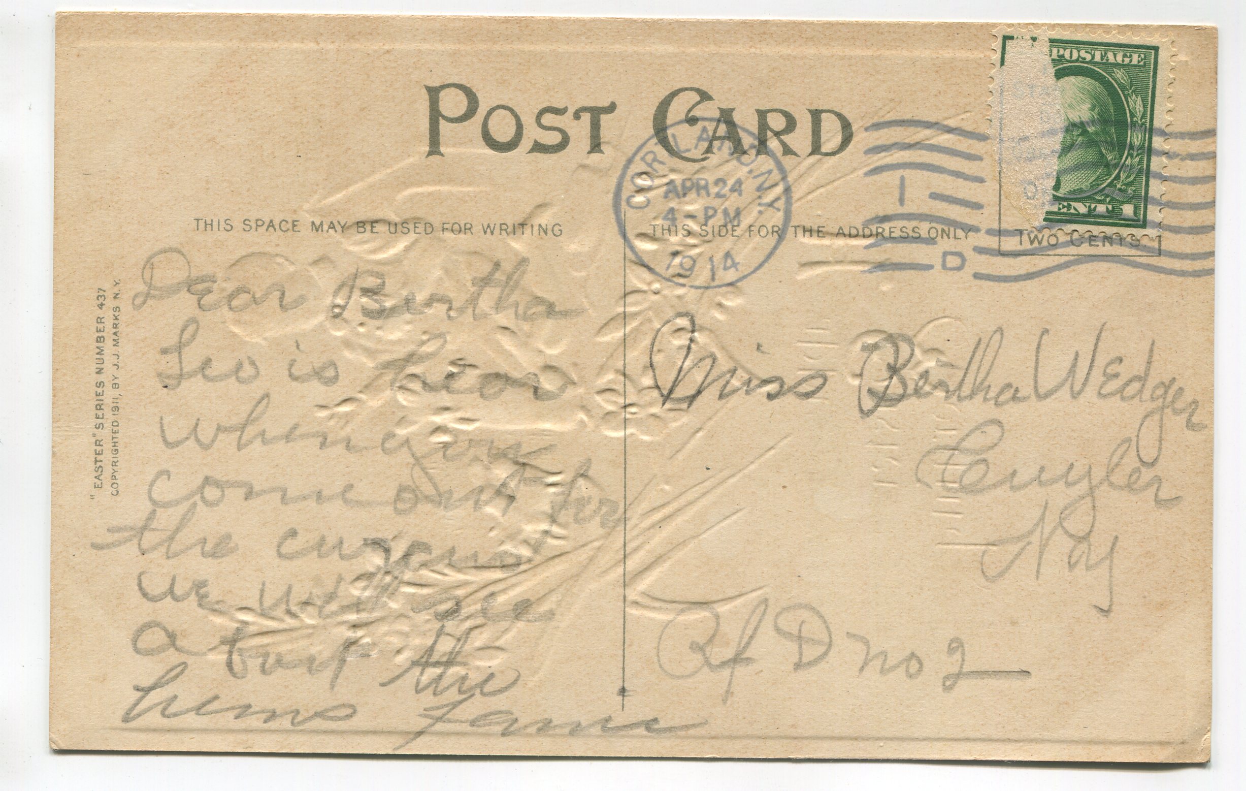 Condition – noticeable corner/edge wear, crease in corners and top edge right of center, rear message impression visible on card front, marks on card front, soiling/marks