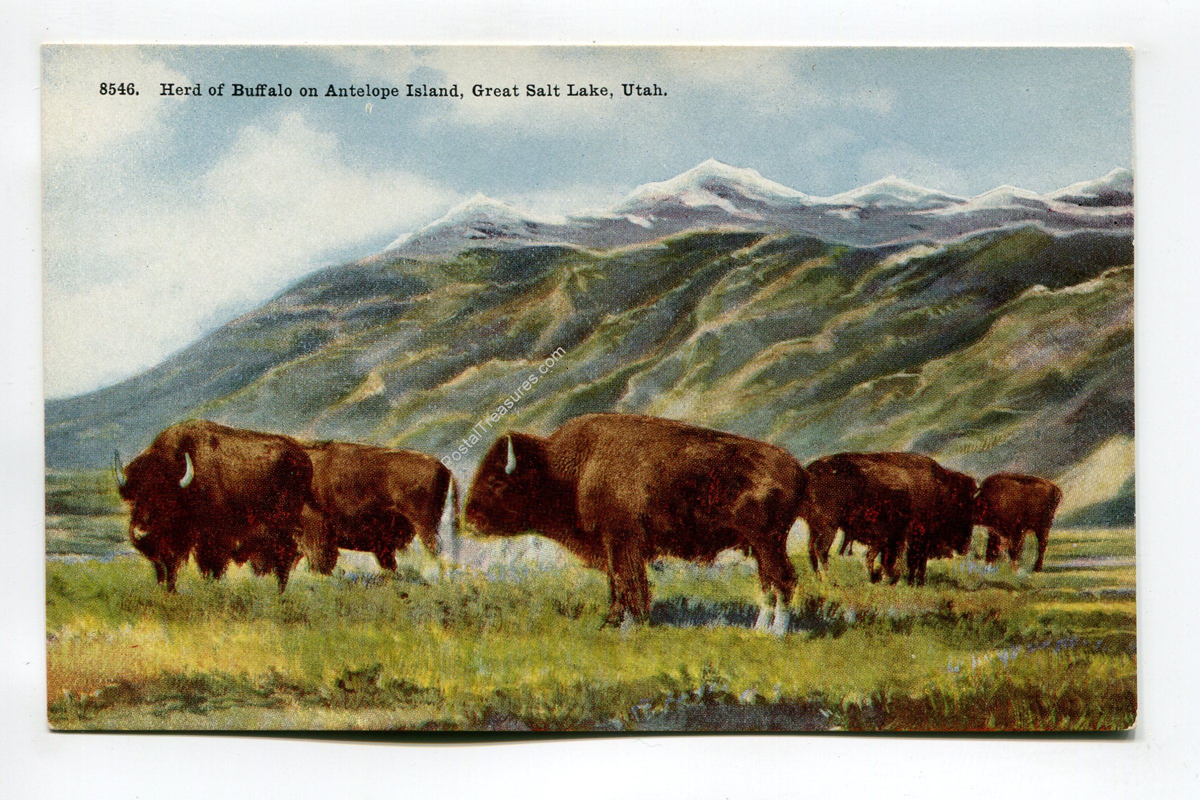 Herd of Buffalo on Antelope Island Great Salt Lake Utah postcard