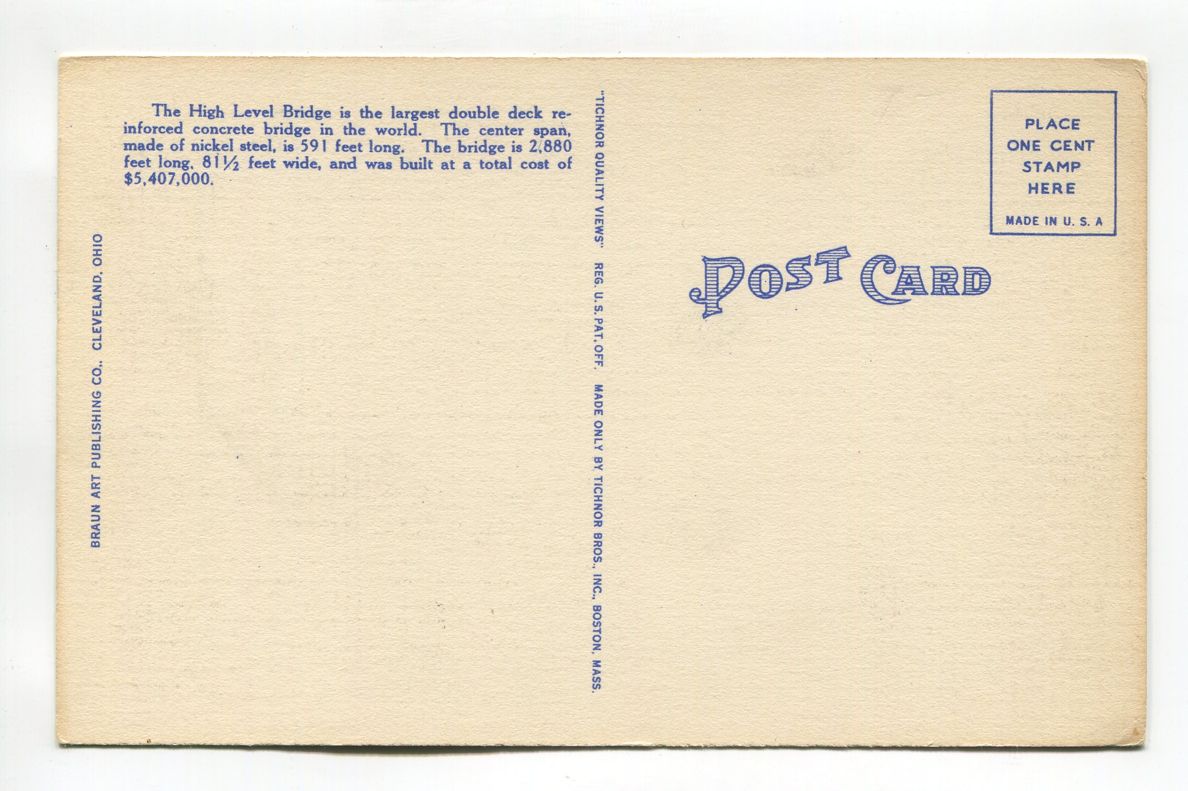 High Level Bridge and Terminal Tower Cleveland Ohio postcard
