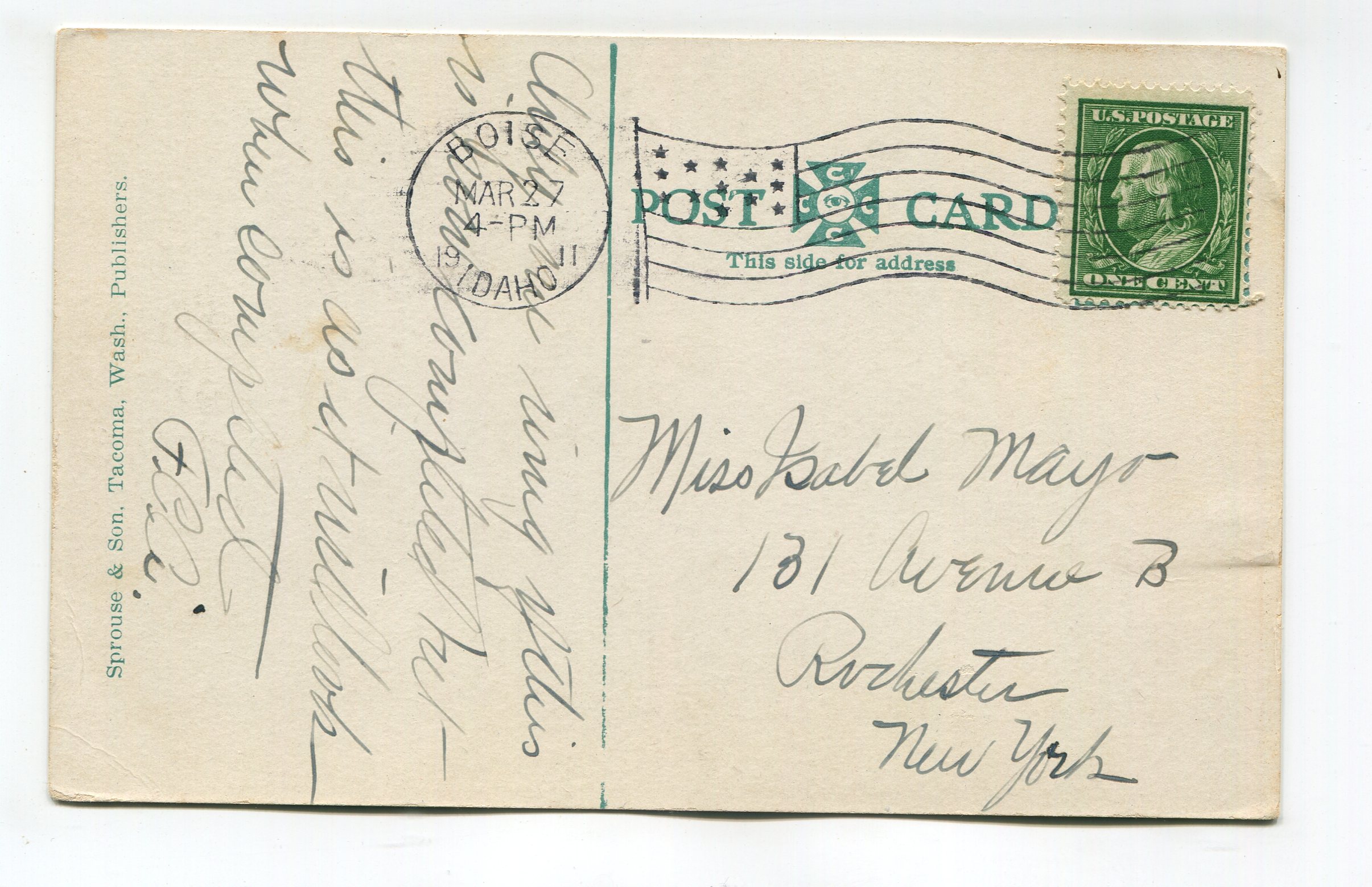 Condition – noticeable corner/edge wear, crease in corners and near upper left corner, crease close to lower right edge, indentation mark in lower left edge, cancelation impression visible on card front, full height diagonal mark close to front right edge, marks on card front, soiling/marks