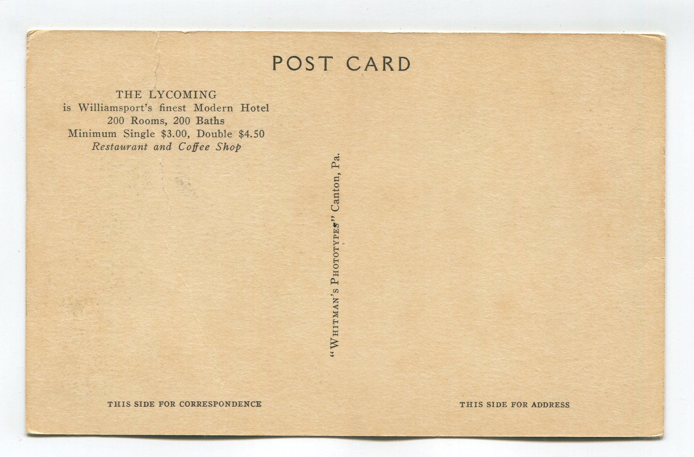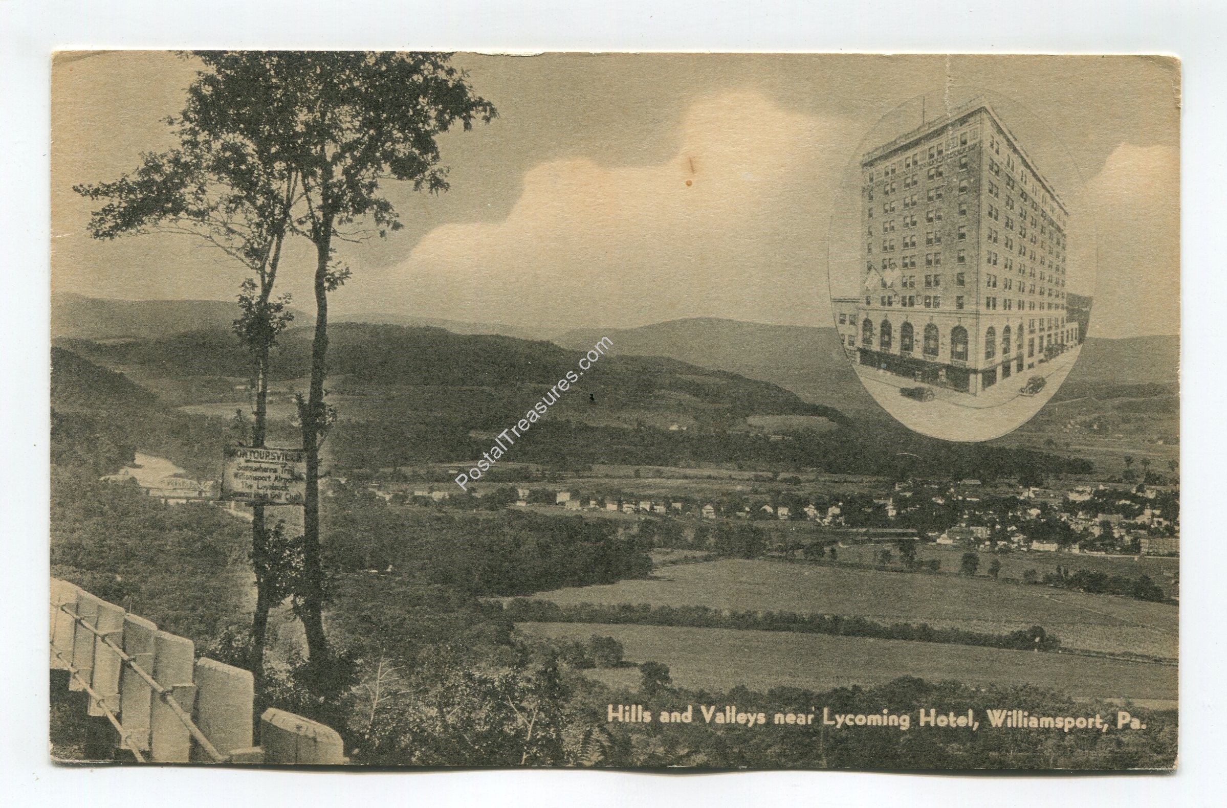 Hills and Valleys near Lycoming Hotel Williamsport Pennsylvania postcard