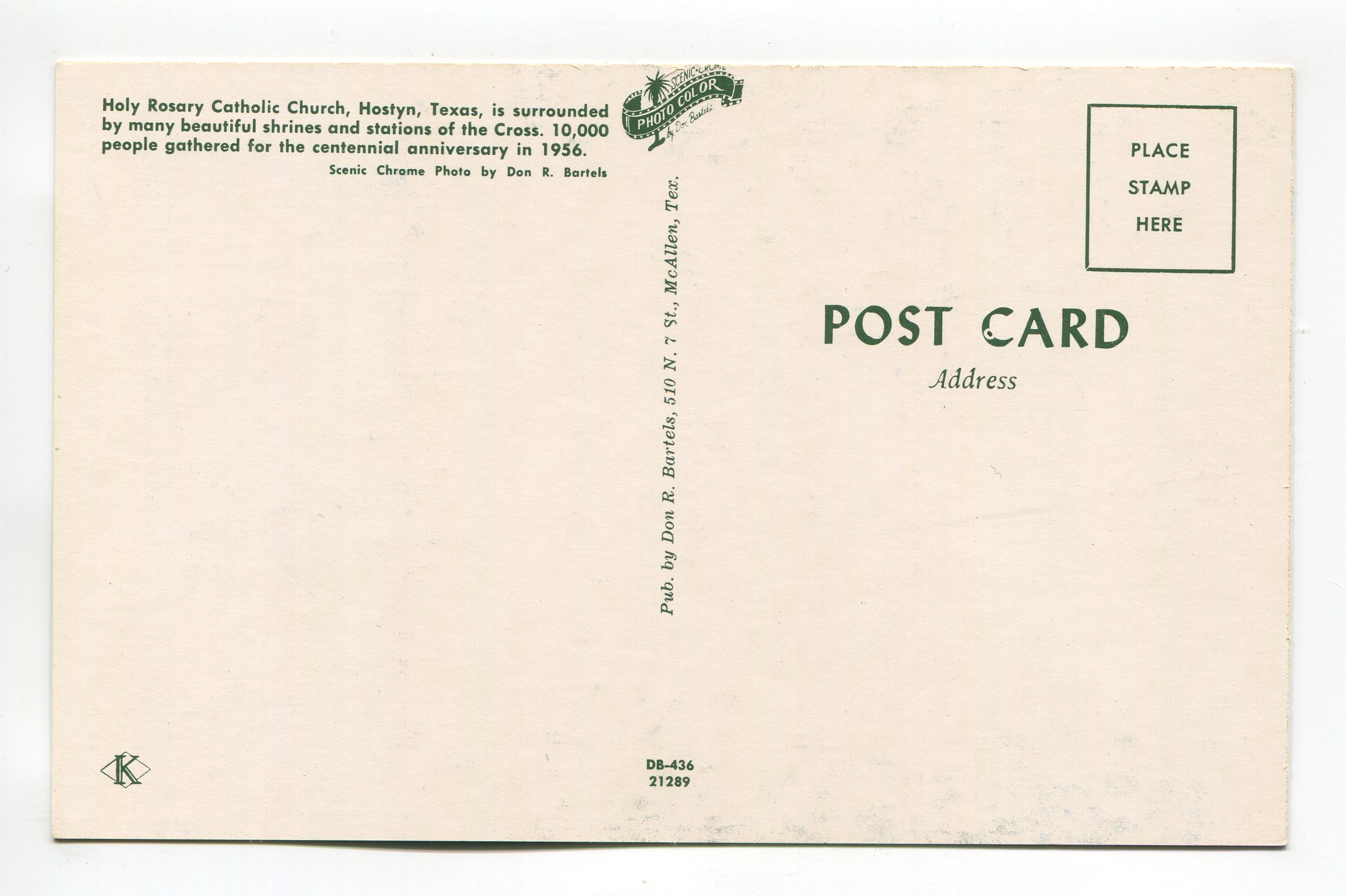 Holy Rosary Catholic Church Hostyn Texas postcard
