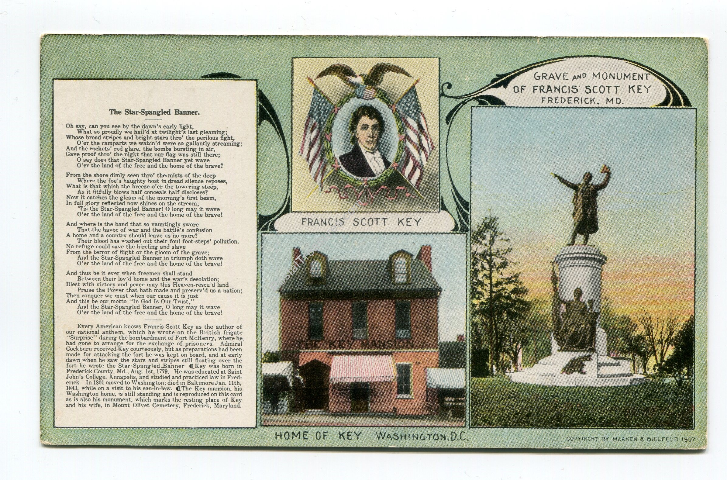 Home of Francis Scott Key Washington DC and Grave and Monument of Frederick Maryland postcard