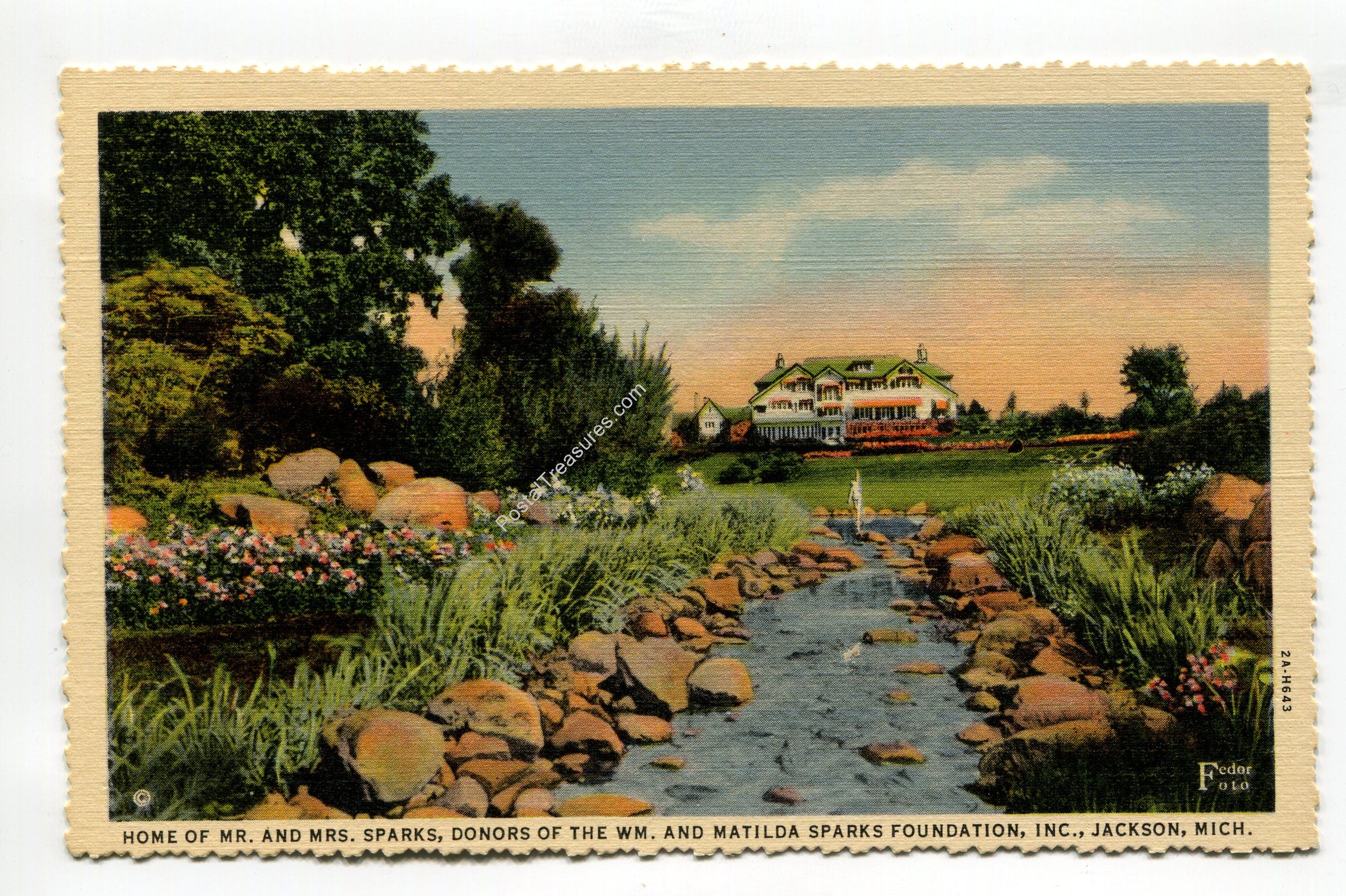 Home of Mr and Mrs Sparks donors of the WM and Matilda Sparks Foundation Inc Jackson Michigan postcard
