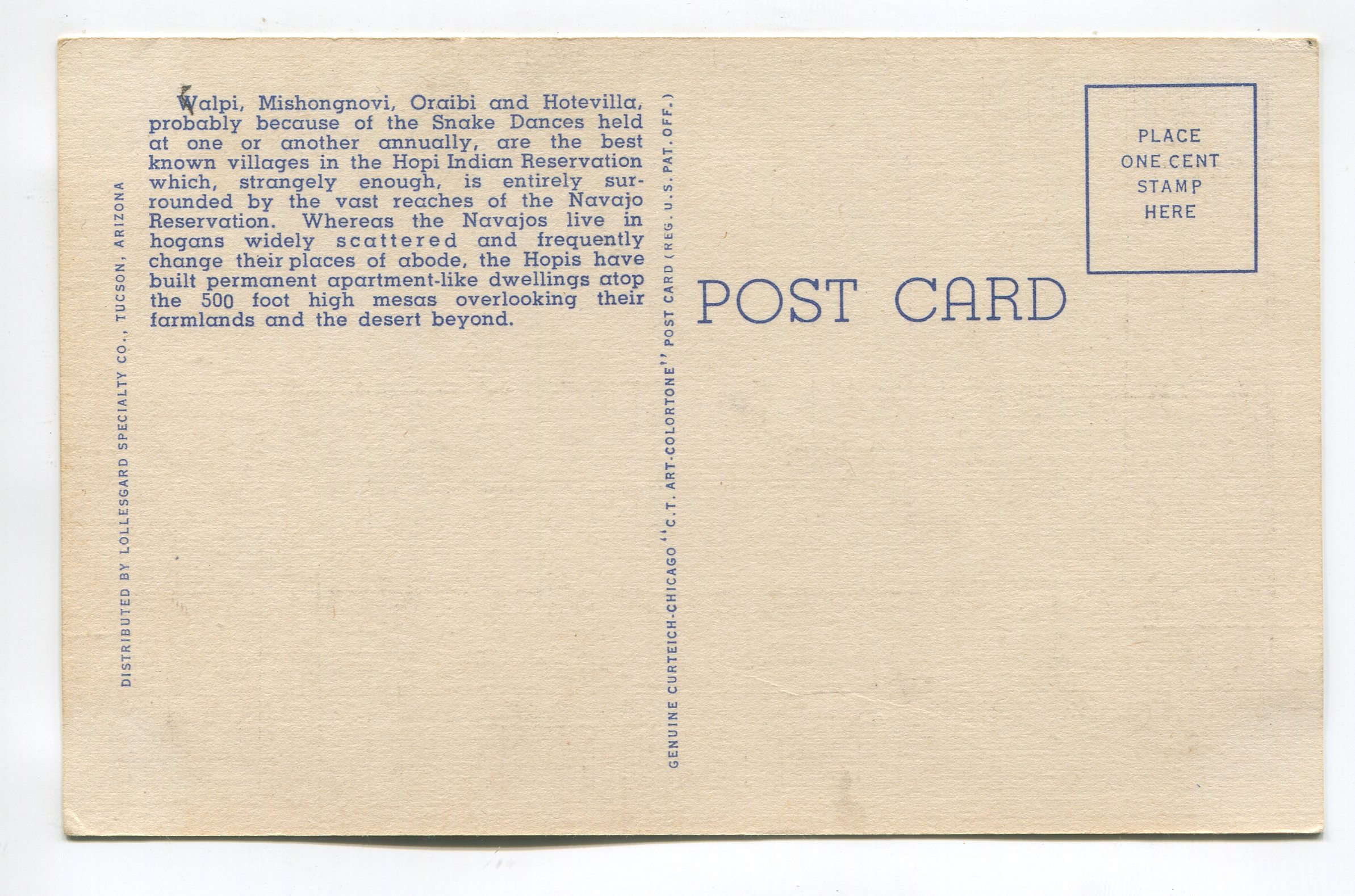 Hopi Indian Village at Walpi Arizona postcard