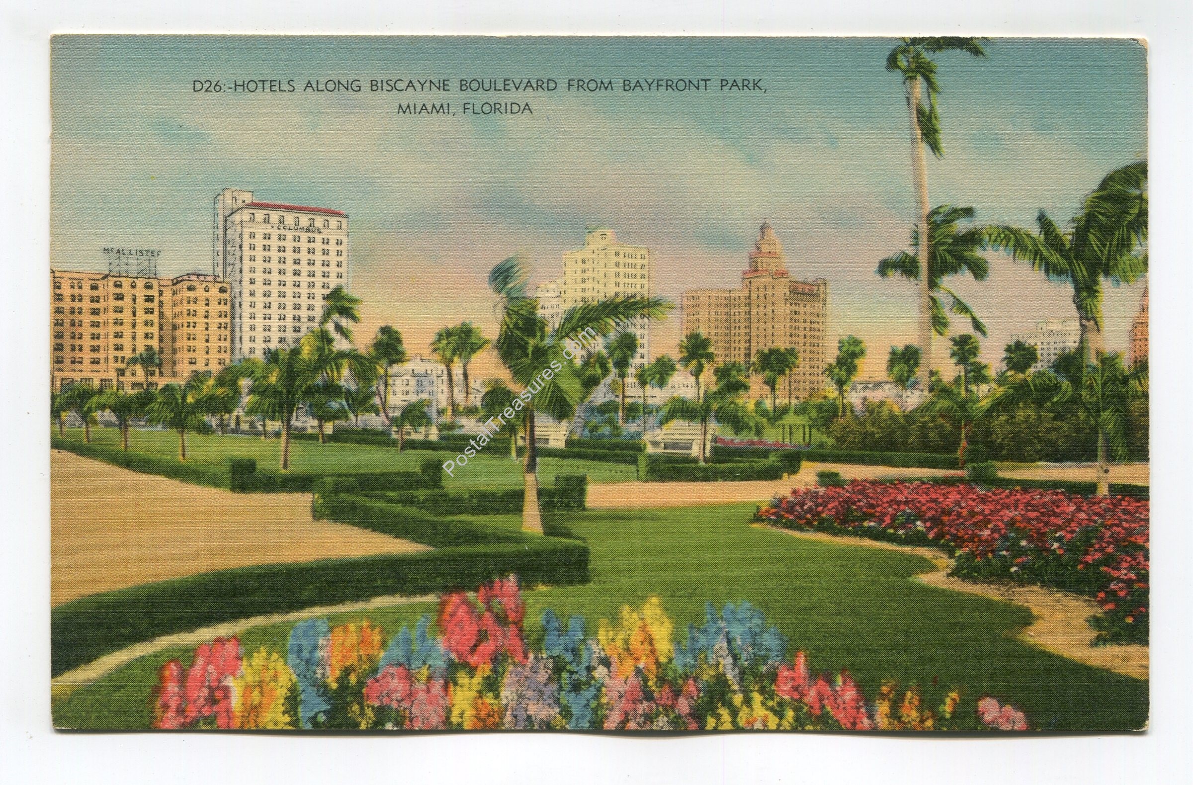 Hotels along Biscayne Boulevard from Bayfront Park Miami Florida postcard