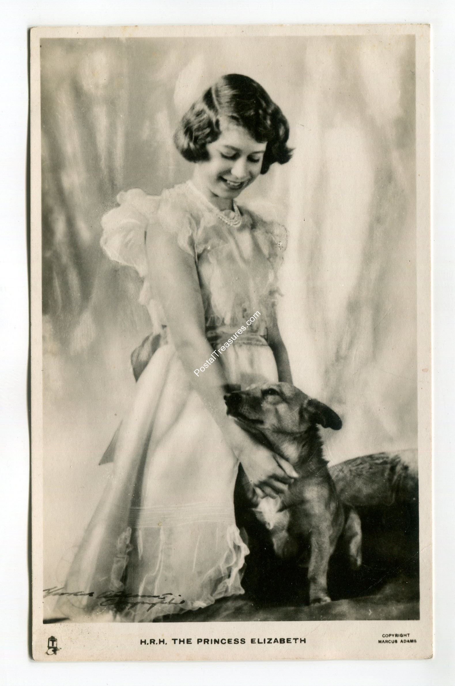 HRH Princess Elizabeth with dog postcard