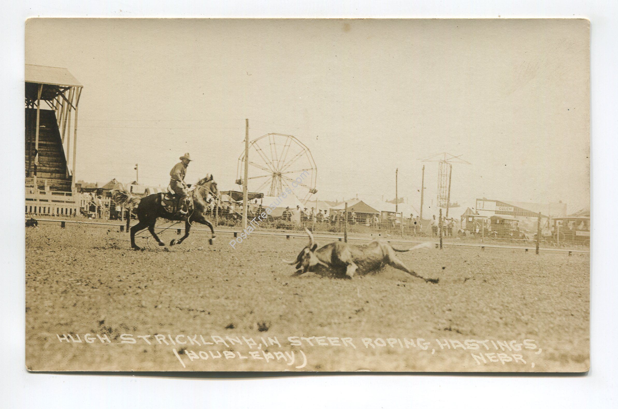 Hugh Strickland in Steer Roping Hastings Nebraska postcard