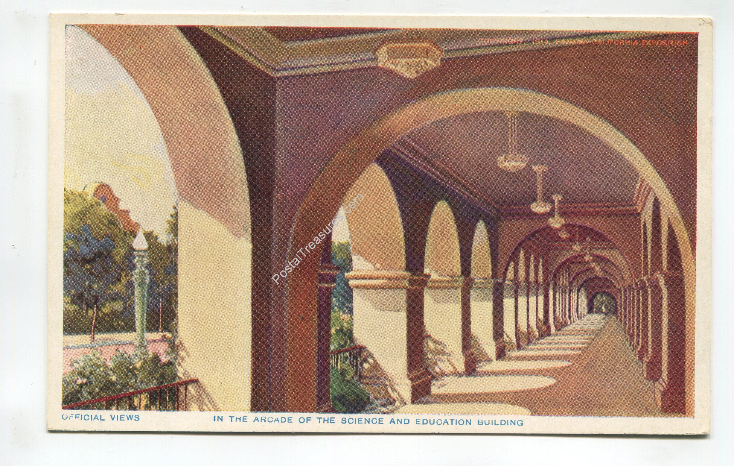 In the Arcade of the Science and Education Building Panama-California Exposition San Diego 1915 postcard