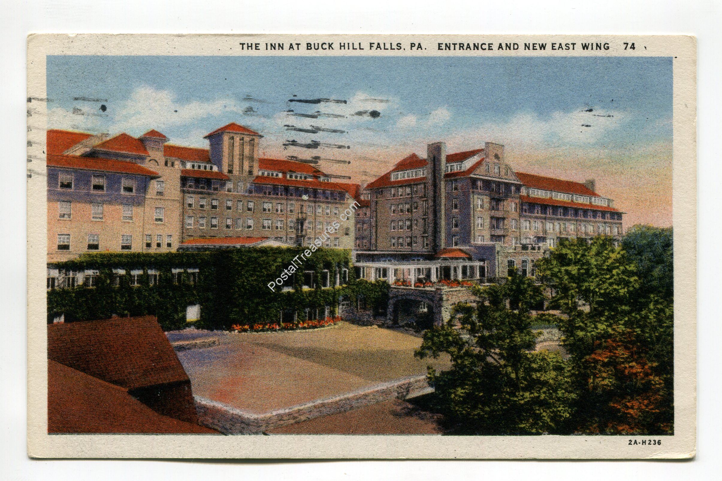 Inn at Buck Hill Falls Pennsylvania entrance and new east wing postcard
