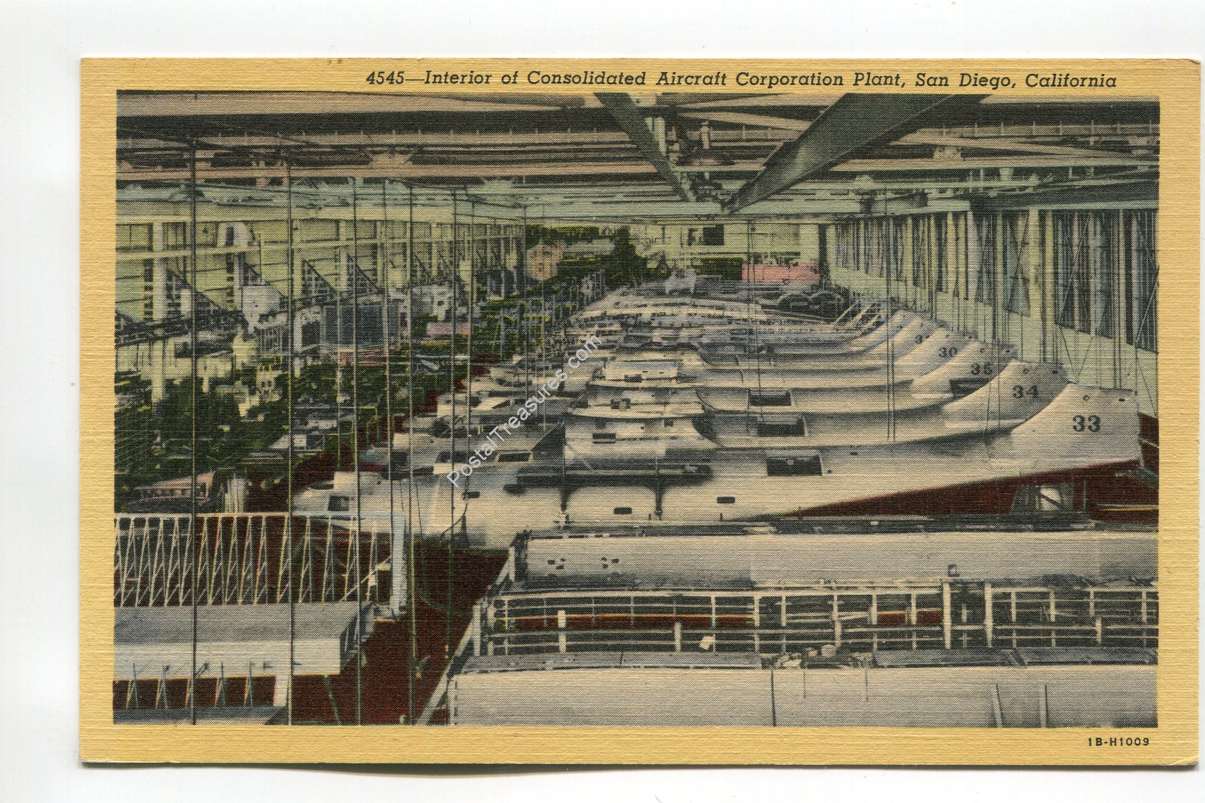 Interior of Consolidated Aircraft Corporation Plant San Diego California postcard