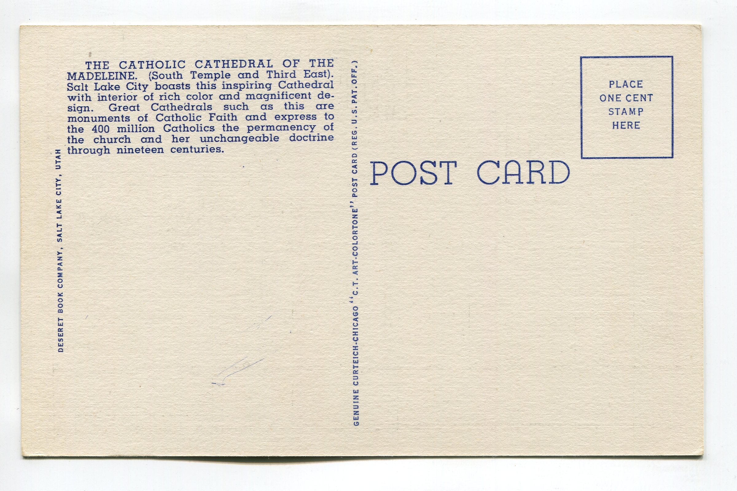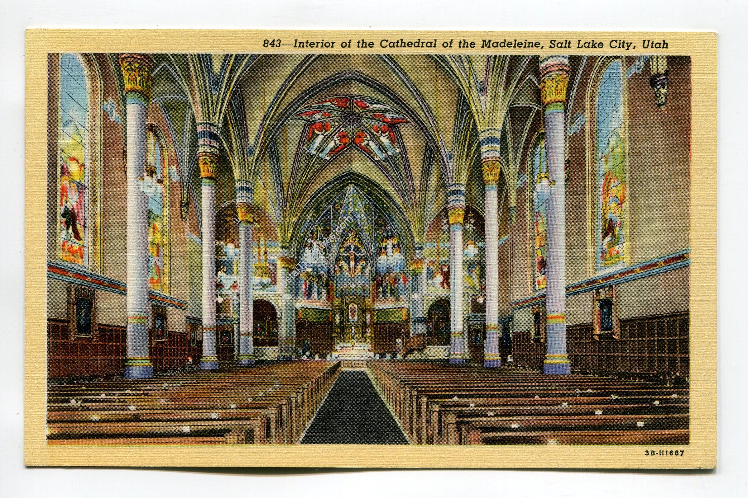 Interior of the Cathedral of the Madeleine Salt Lake City Utah postcard