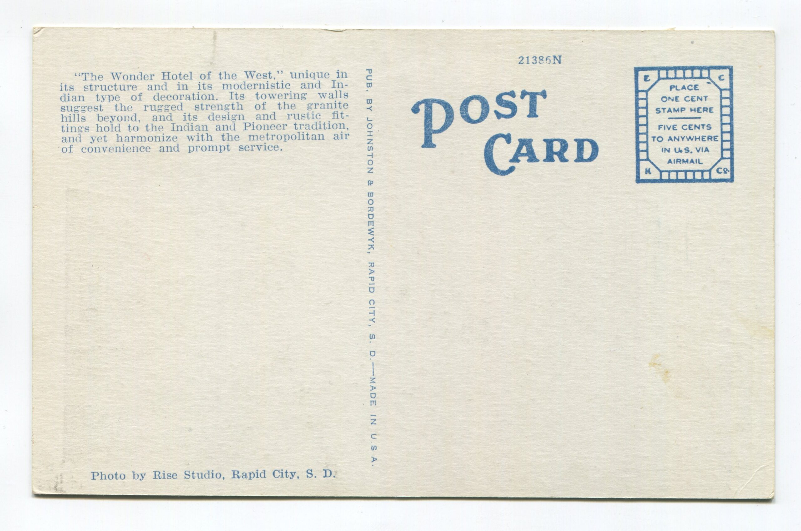 Johnson Hotel Rapid City in the Black Hills South Dakota postcard