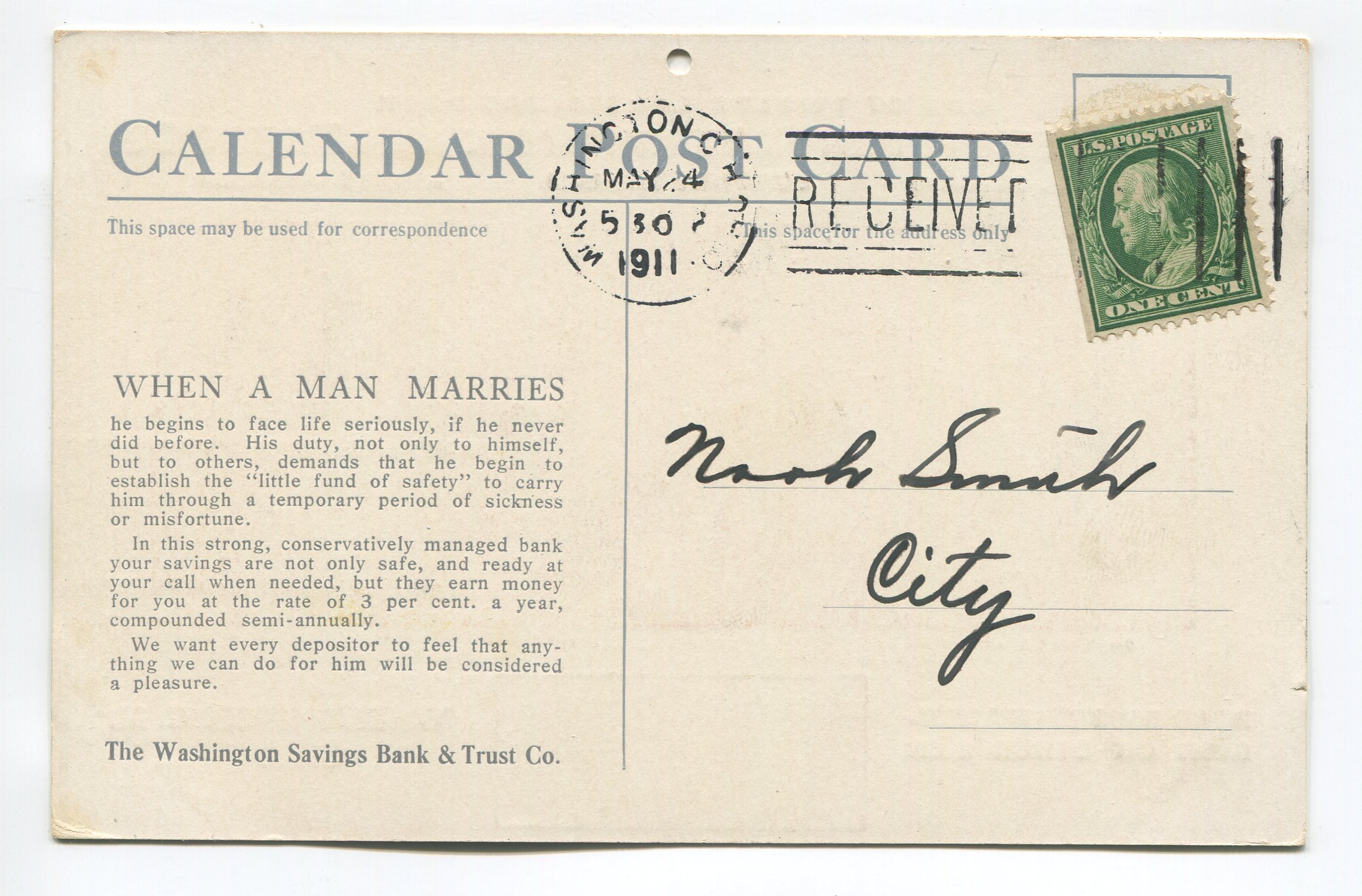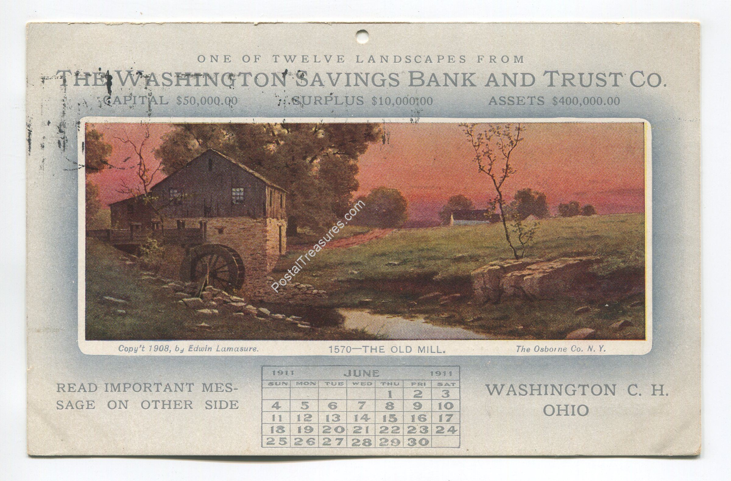 June 1911 Calendar – Washington Savings Bank and Trust Co. Ohio postcard
