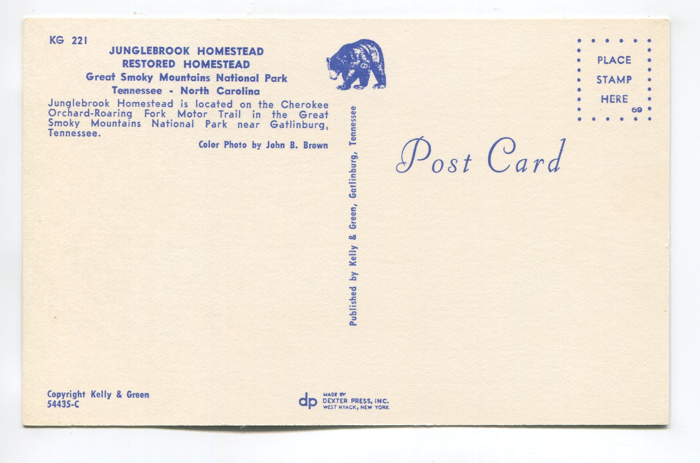 Junglebrook Homestead Restored Homestead Great Smoky Mountains National Park Tennessee postcard