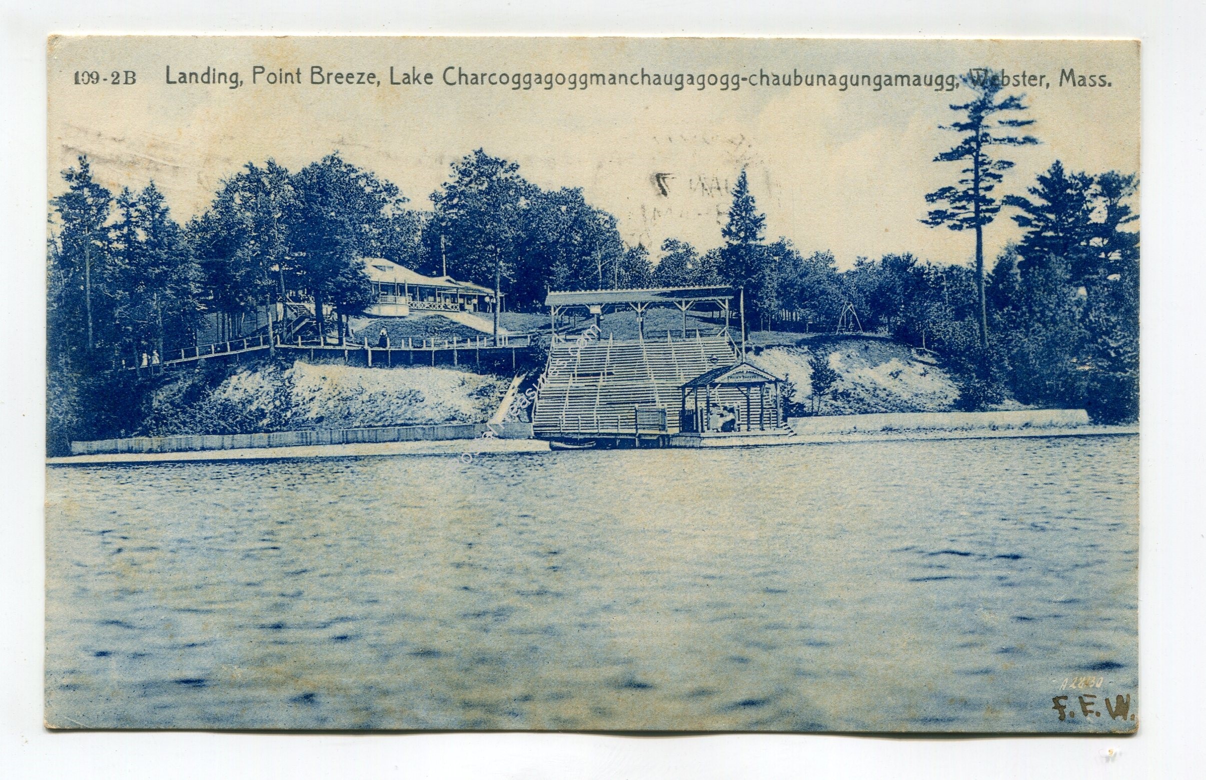 Landing Point Breeze Lake Charcoggagoggmanchaugagogg-chaubunagungamaugg Webster Massachusetts postcard