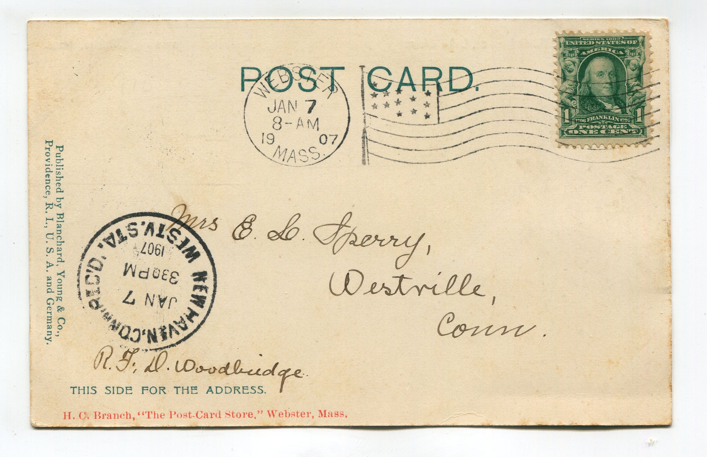 Condition – noticeable corner/edge wear, crease in corners and in lower left edge, indentation mark in lower left edge, cancelation impression visible on card front, album impression marks around corners, writing and marks on card front, soiling/mark