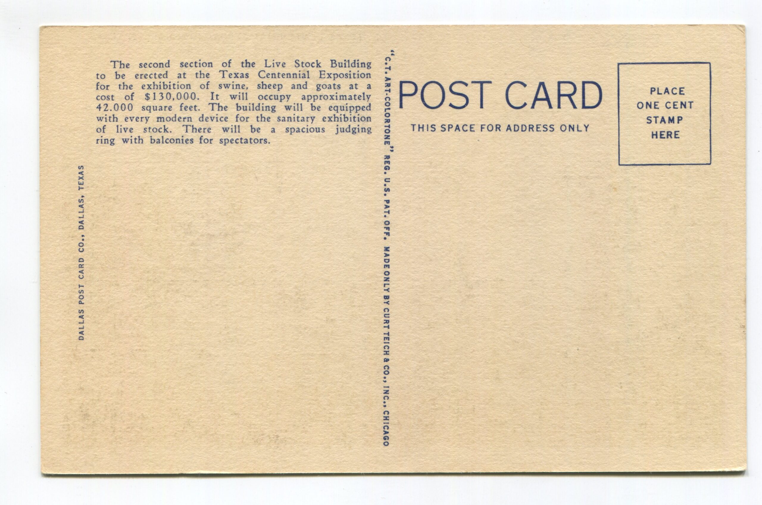 Live Stock Pavilion Texas Centennial Exposition Dallas Texas postcard