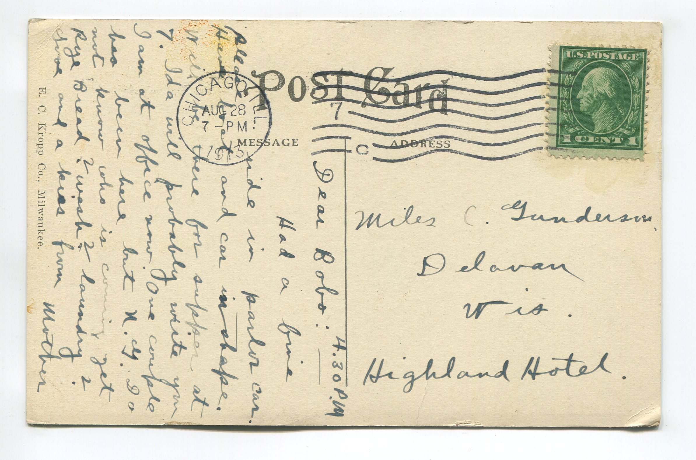 Condition – noticeable corner/edge wear, creases in corners, crease in top edge right of center and in bottom edge left of center, cancellation impression visible on card front, marks on card front, soiling/marks