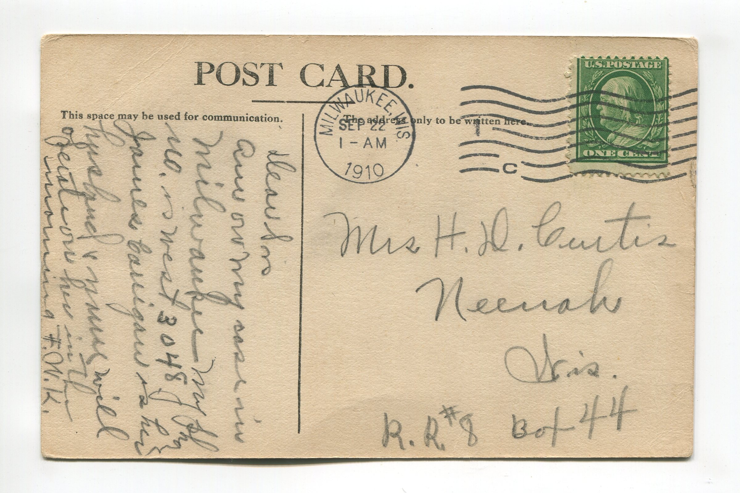 Condition – noticeable corner/edge wear, crease in corners and in lower left edge, crease in bottom edge left of card center and near center of right edge, cancellation impression/marks visible on card front, soiling/marks