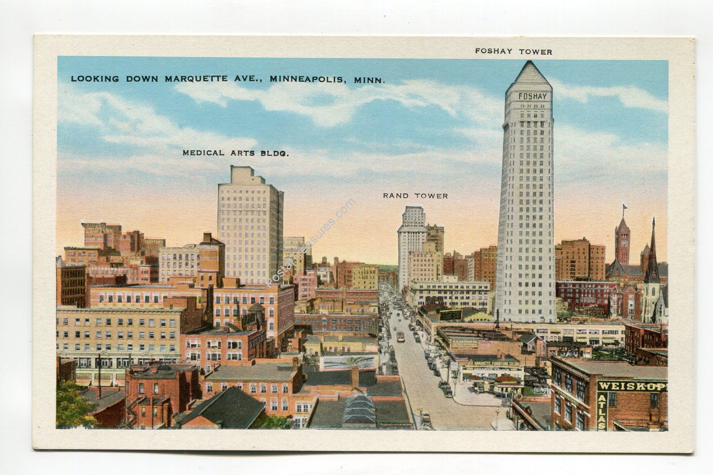 Looking down Marquette Avenue Minneapolis Minnesota postcard