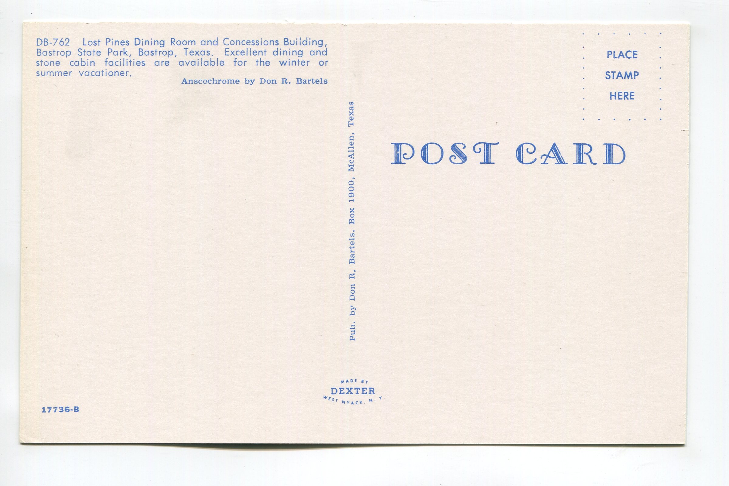 Lost Pines Dining Room and Concessions Building Bastrop State Park Bastrop Texas postcard
