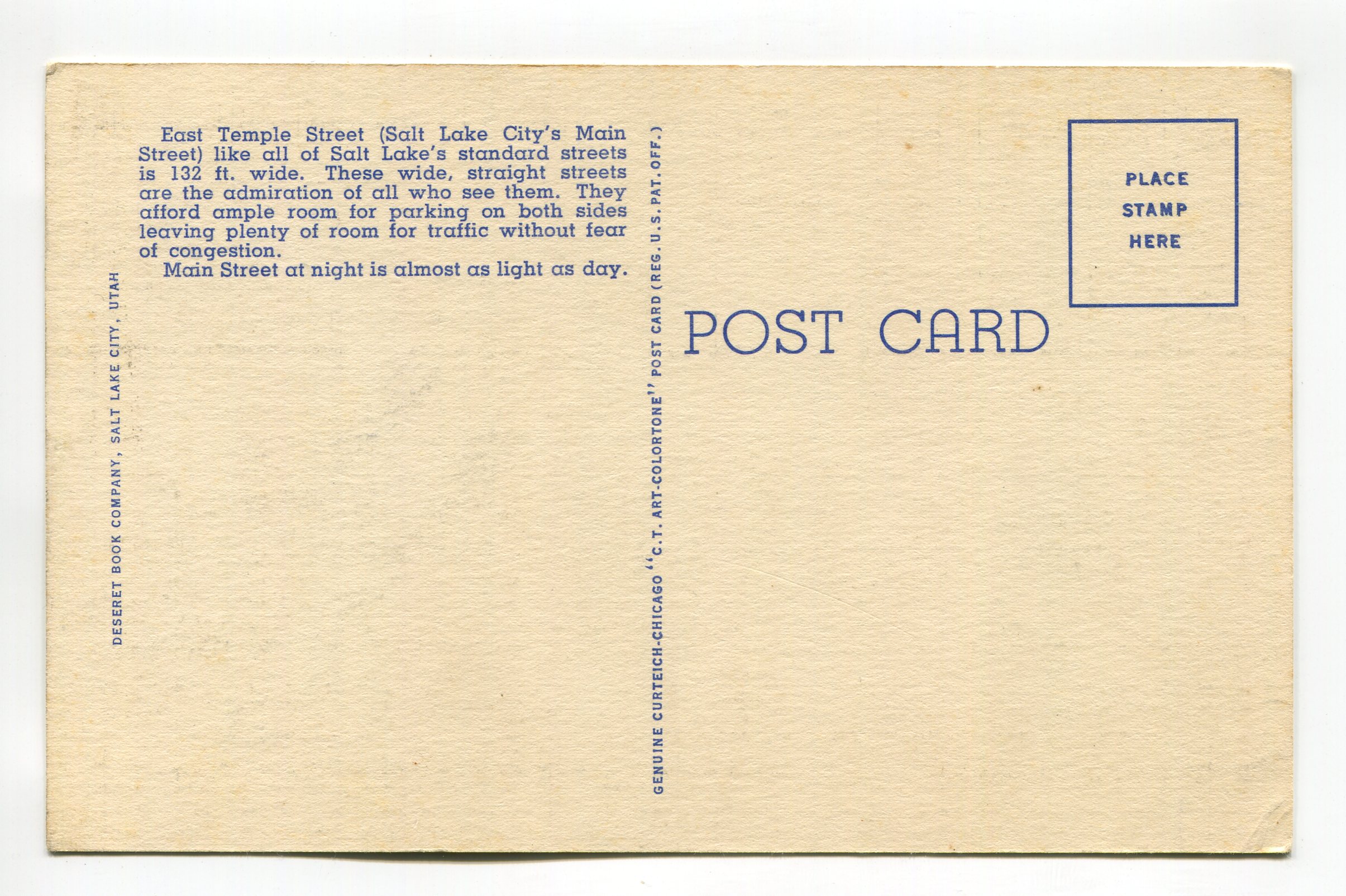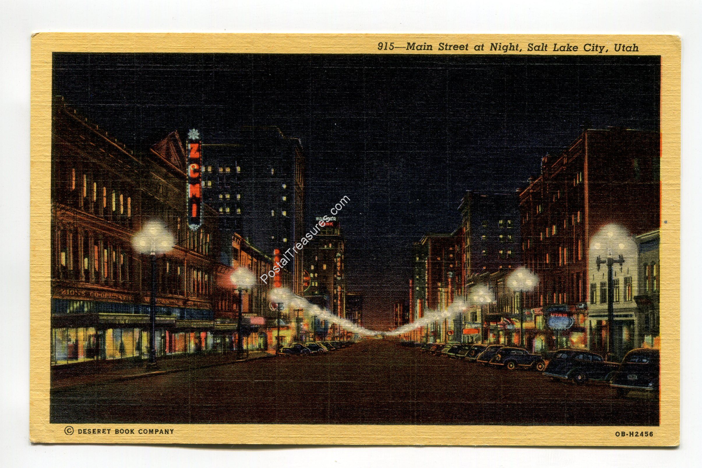 Main Street at Night Salt Lake City Utah postcard