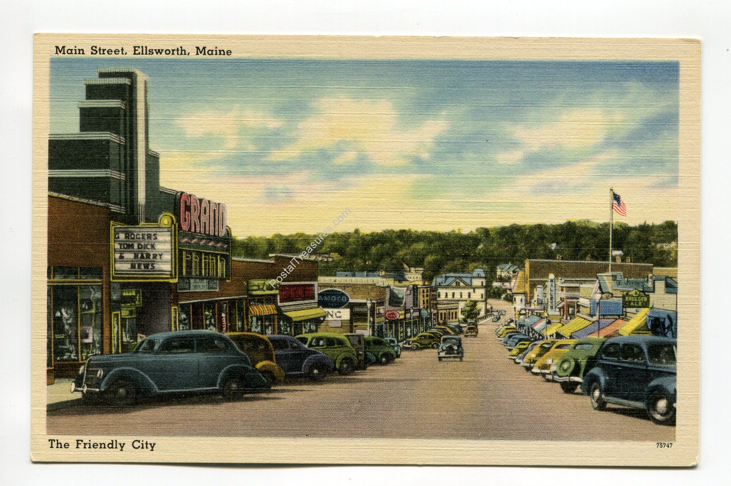 Main Street Ellsworth Maine postcard
