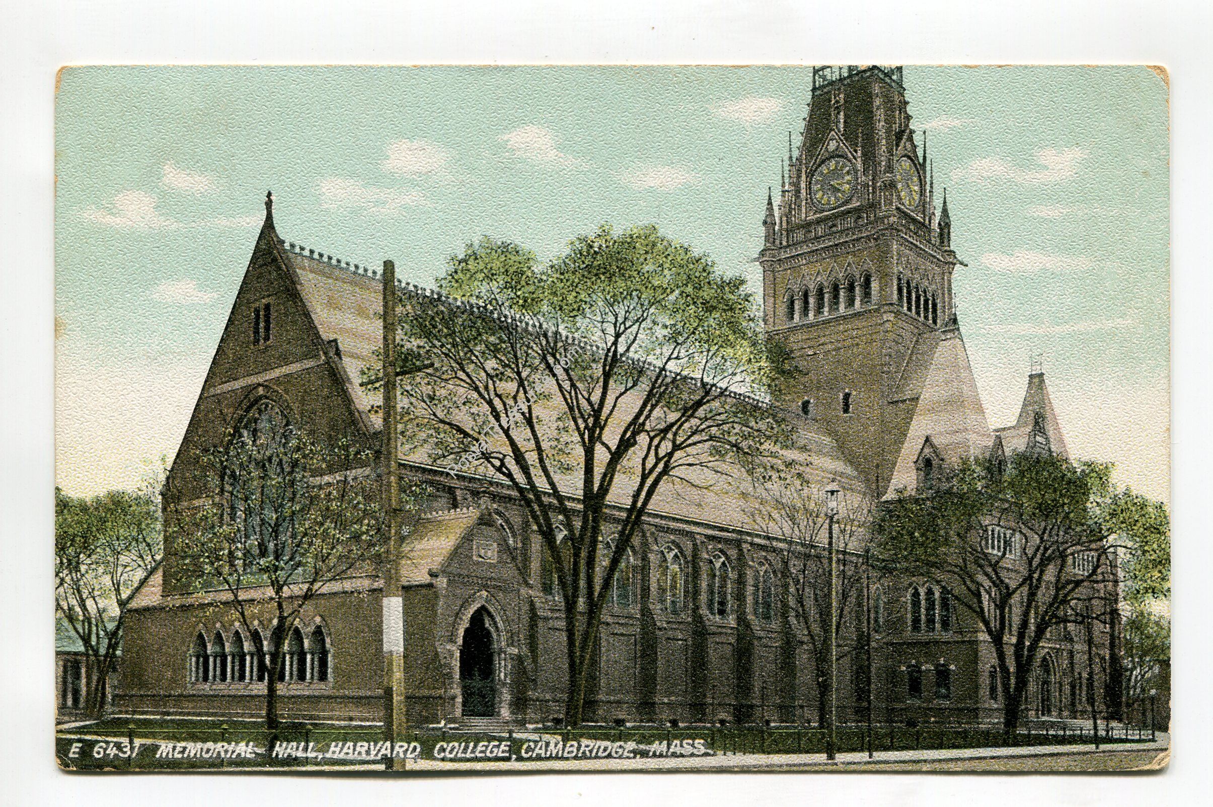 Memorial Hall Harvard College Cambridge Massachusetts postcard